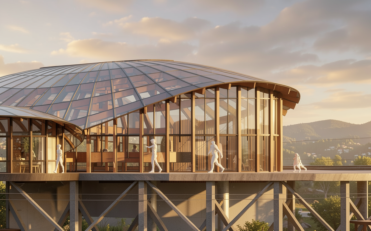 high end architectural visualization of a modern beach club development designed for investor presentation style luxury mediterranean beach club with contemporary minimalist design natural materials warm and inviting atmosphere key materials wpc decking walkways sand and coconut fiber pathways light wood textures rattan furniture fabric shades and pergolas lighting golden hour sunlight soft warm tones cinematic shadows realistic reflections and highlights vegetation tamarix trees beach grass ammophila lavender and sea buckthorn shrubs pine trees occasional olive trees for premium zones mood vibrant but elegant relaxed luxury summer lifestyle people stylish well dressed beach guests natural candid interactions not crowded but lively rendering quality ultra realistic 4k resolution cinematic composition depth of field soft haze for atmosphere color palette neutral sandy tones warm wood white beige textiles subtle accent colors to be harmonized