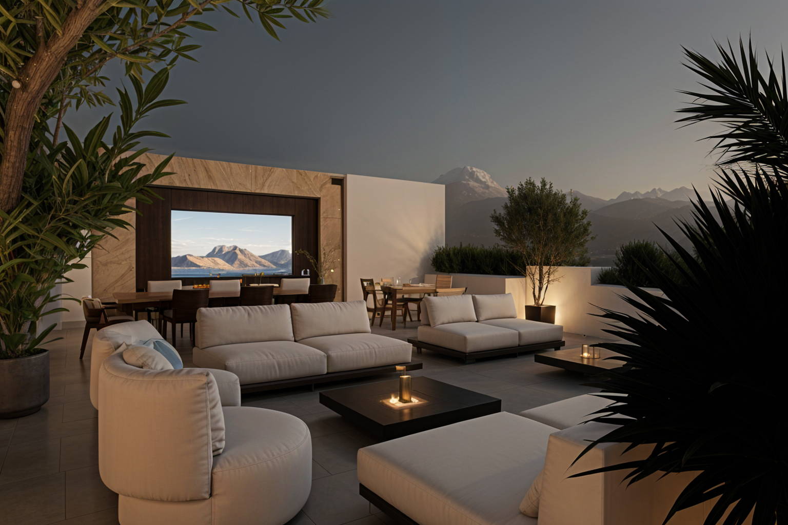 put byfold doors over middle section though don t render fully closed so travertine section and tv are still visible