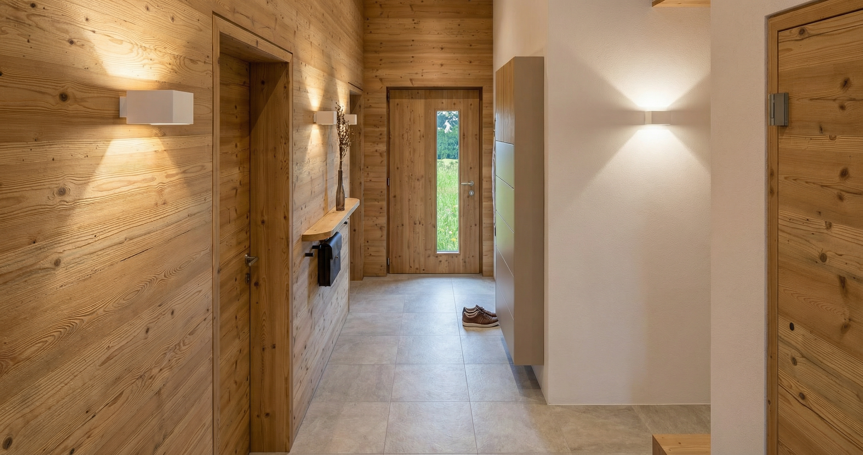 the white elements on the wall are wall lights up and down