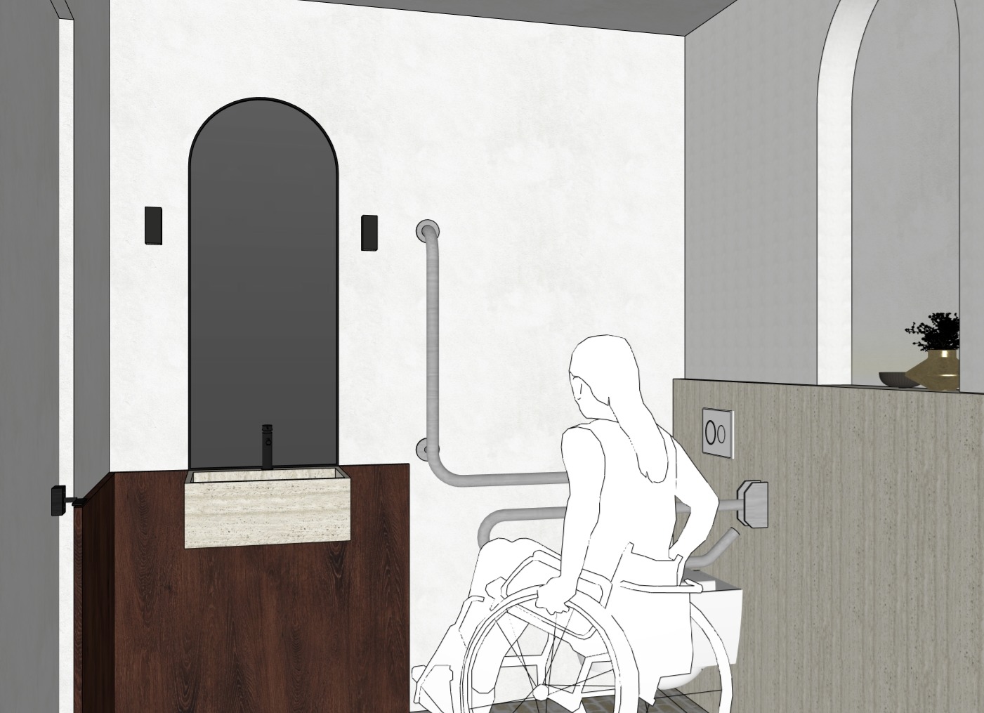 sketchup visualisation of accessibility toilet right wall is light cladding and simple niche no reflexion in the niche