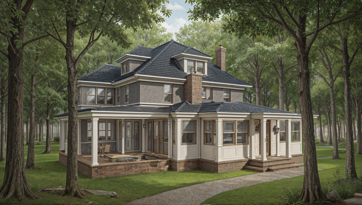 slate roof grey paint in a forest imitating frank lloyd wright s falling water