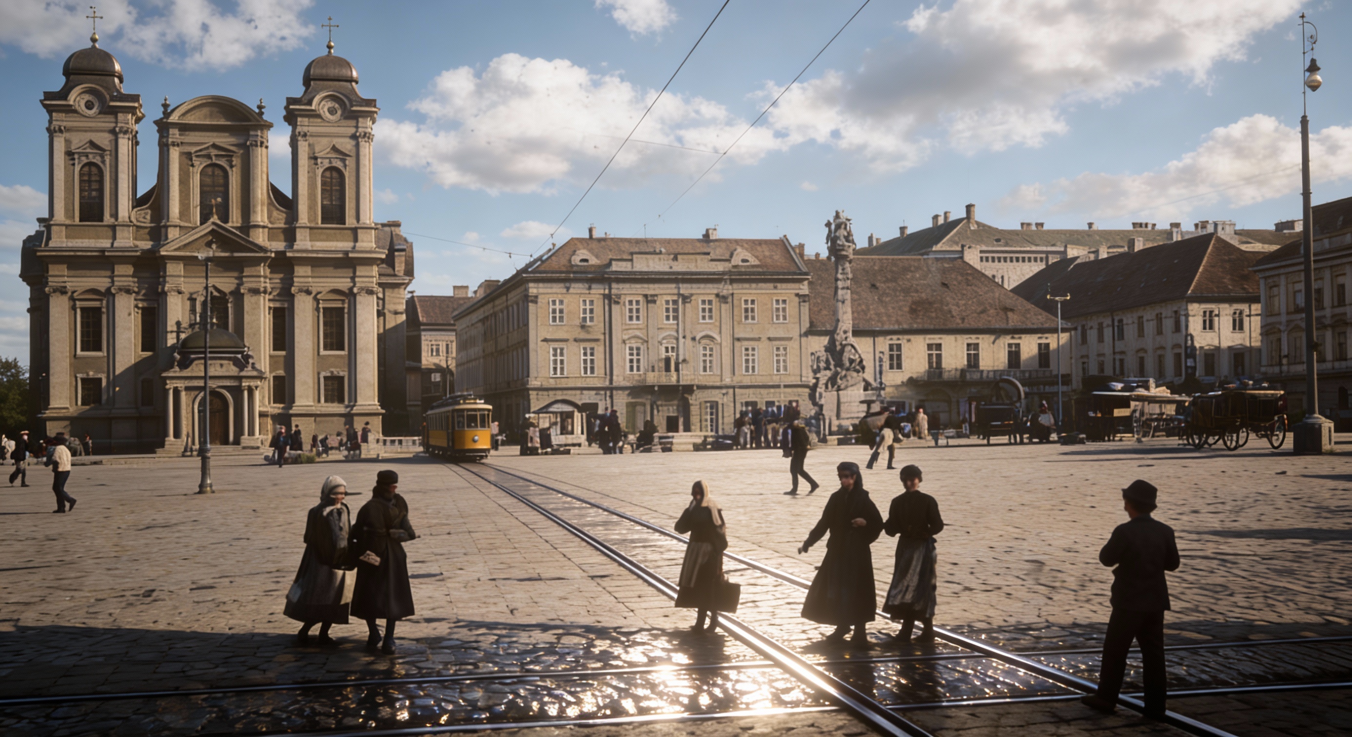 sunny day 1900 s style atmosphere beautyful clouds remove text from top of the picture cinematic hyperrealistic render