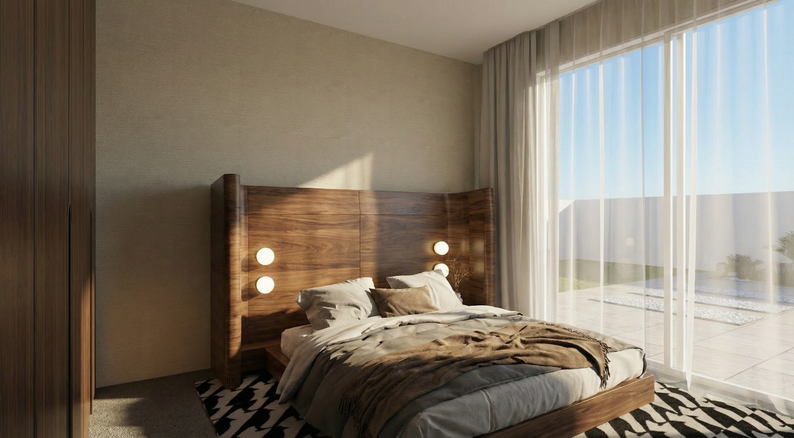 make this like this descriptionmodern minimal refined contemporary large uninterrupted planes simple rectilinear forms very controlled detailing spa hotel suite vibe calm tactile materials and a restrained palette that feels restorative rather than decorative material color story warm greige stone travertine limestone look used as full height wall cladding the vertical movement and subtle pitting give it depth without busyness deep smoky wood vanity walnut thermally treated oak tone grounding the space and adding warmth