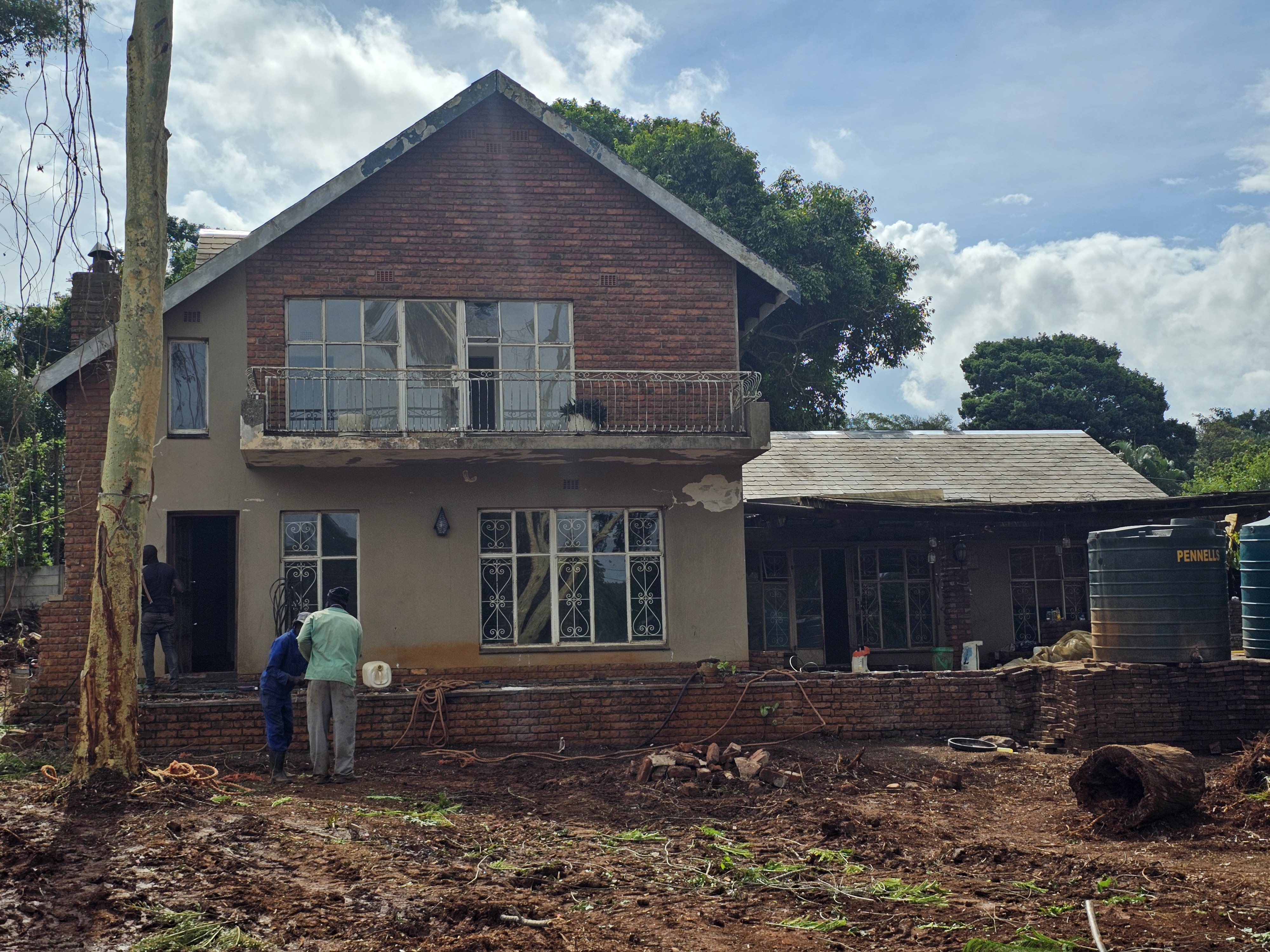 remove the water tanks modernize the elelvations charcoal roof new pool at natural ground level with spouts into pool new aluminium sliding door centered on the balcony stainless steel balustrades