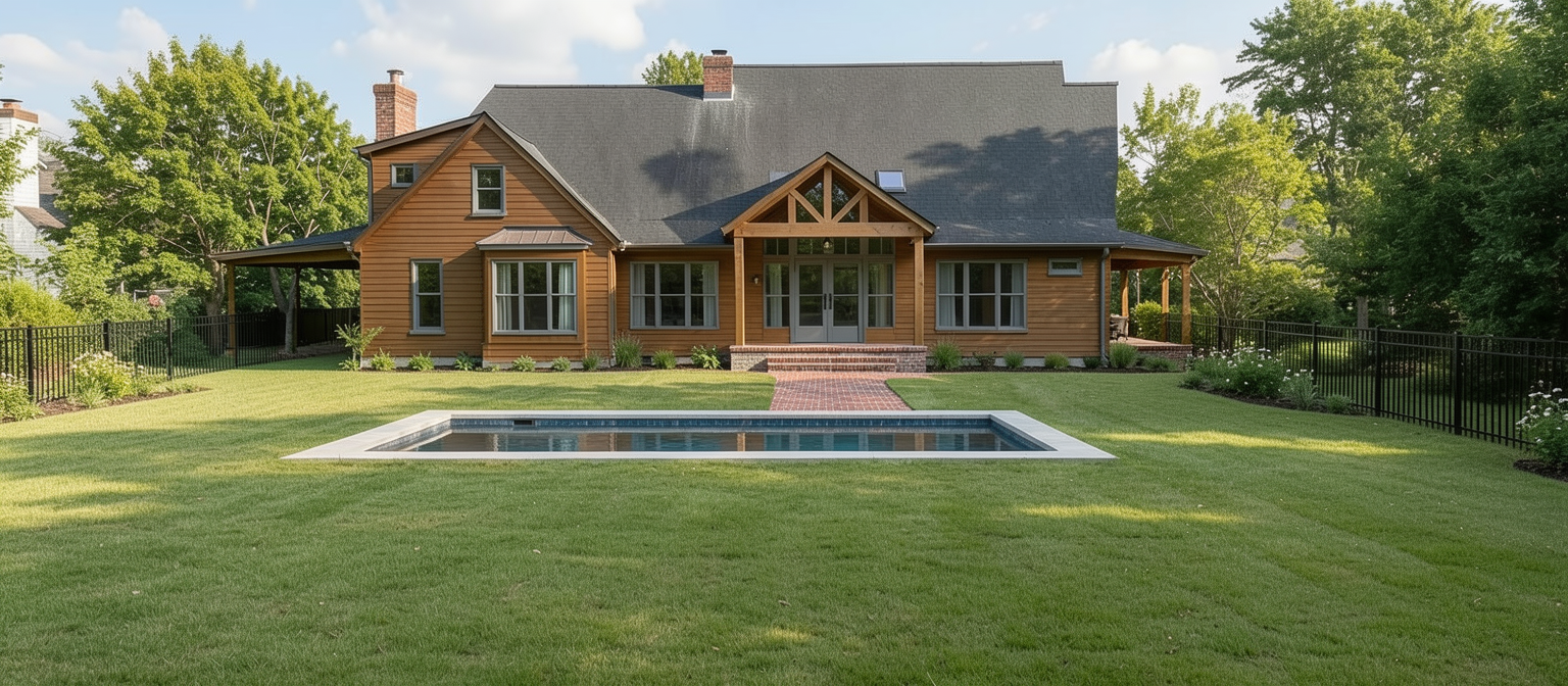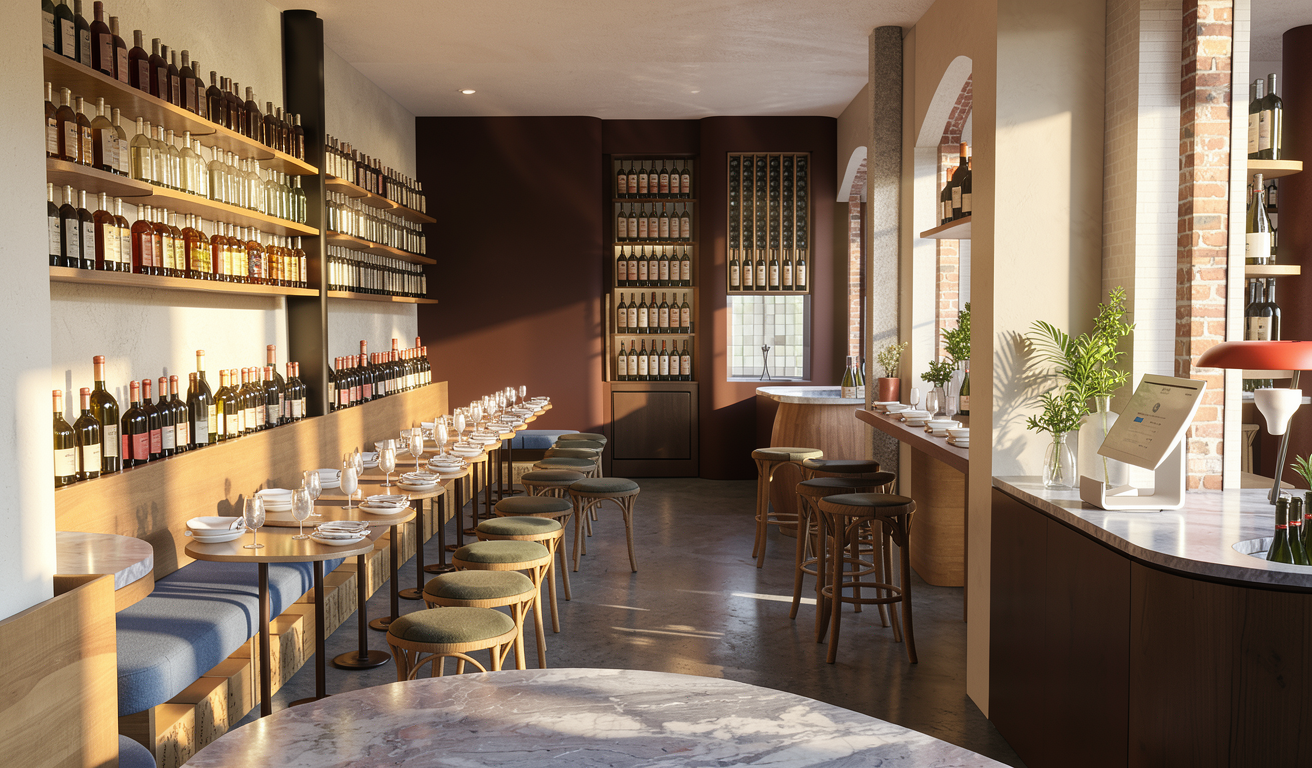 render an elegant vintage inspired kitchen with high arched ceilings use a soft warm ivory color for the walls enhancing the classic architecture add a rustic bronze chandelier with warm glowing light reflect soft shadows on the walls to create depth the floors should be a polished marble texture in light beige with subtle speckles of gold include a large dark wood framed window on the right casting daylight into the room with a serene airy ambiance the open door on the left should be crafted from rich mahogany wood inviting a sense of warmth and welcoming overall create a peaceful timeless atmosphere
