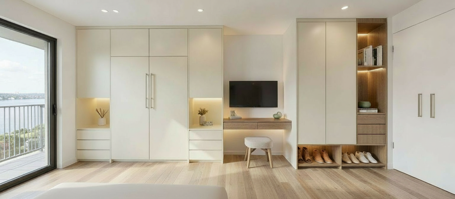 in this image at the entry wooden unit on the right end please change the upper niche with books to a upper cabinet with a handless single door