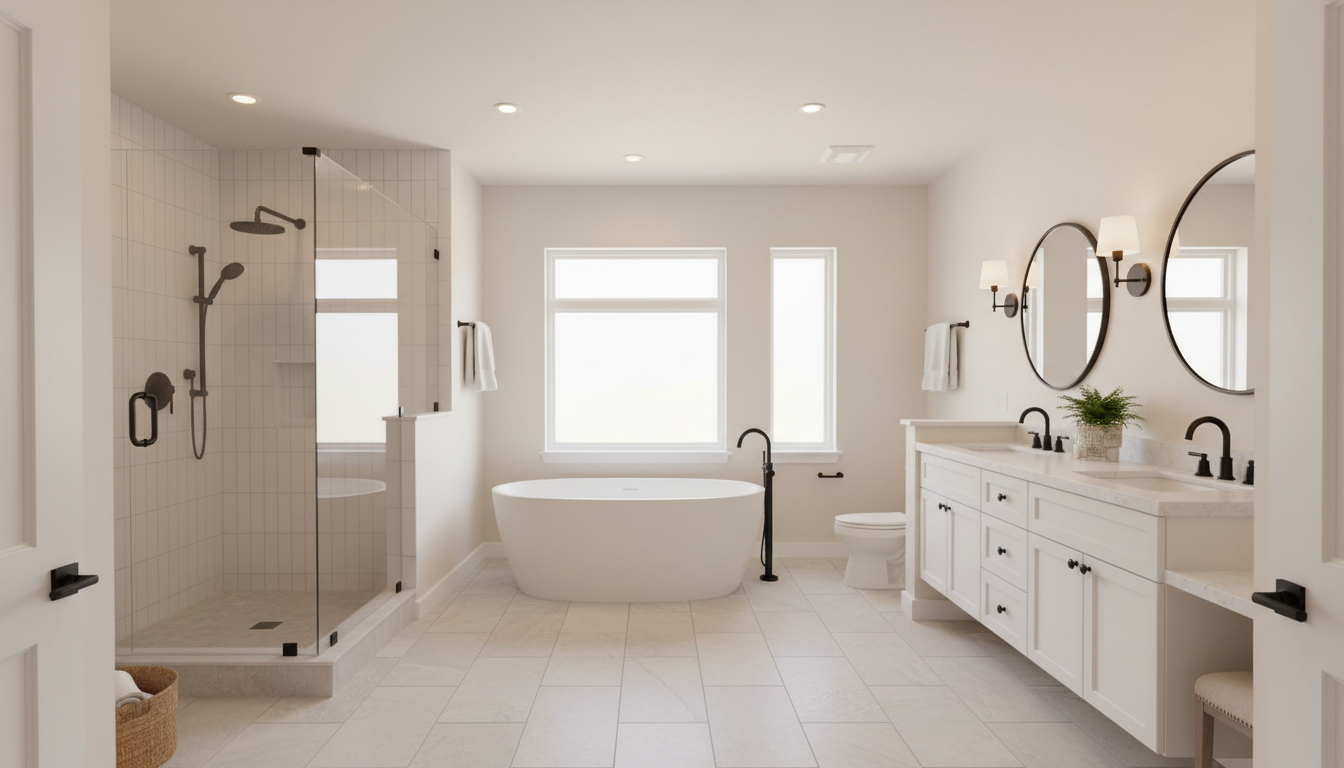 do not change the cabinets in any way preserve the exact cabinet colors materials finishes dimensions door and drawer styles hardware spacing alignment and all geometry exactly as shown do not alter the countertop shape backsplash appliances flooring lighting fixtures or wall structure only remove the construction materials clutter and mess from the scene clean the room and make it look finished and staged add a few simple tasteful home accessories appropriate for the style of the space but do not add or remove any furniture windows or architectural elements maintain the original lighting direction and realism enhance clarity and polish the photo while keeping the cabinetry and room design completely unchanged do not alter the lighting to keep the cabinet colors as they are in the image change the ceiling to be drywall restage the inside of the cabinet with organized and neat office supplies
