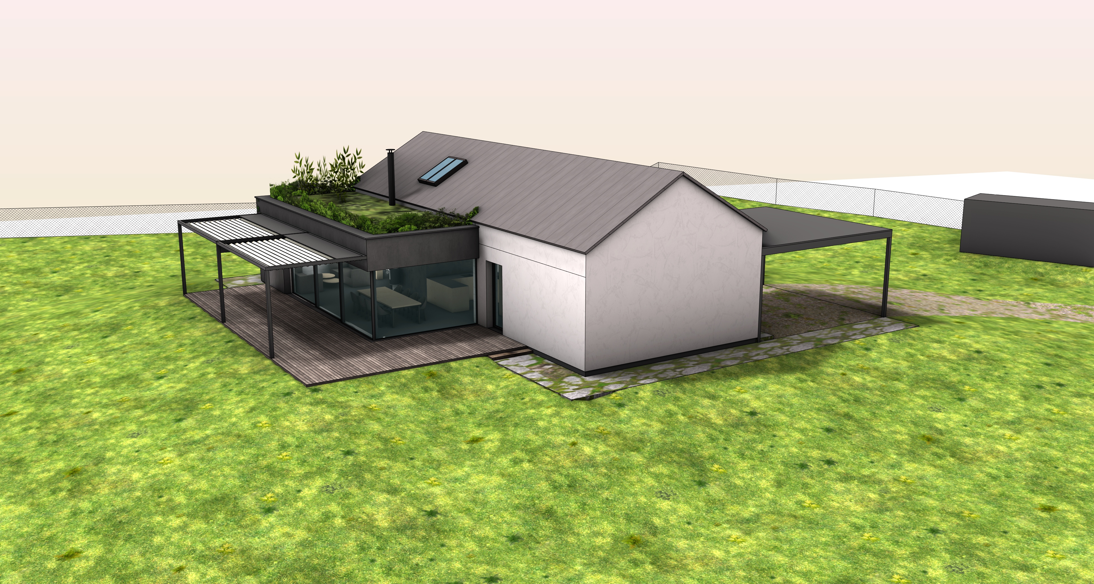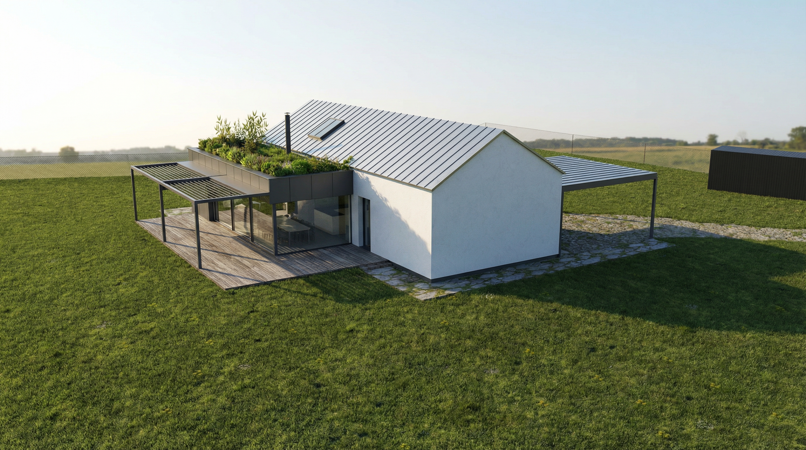 light grey metal roof graphite grey pergolas and window frames graphite gray plaster on fasade grey white plaster on fasade countryside surroundings