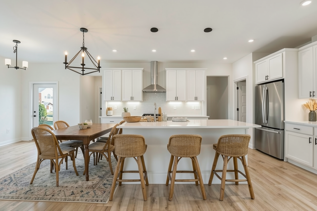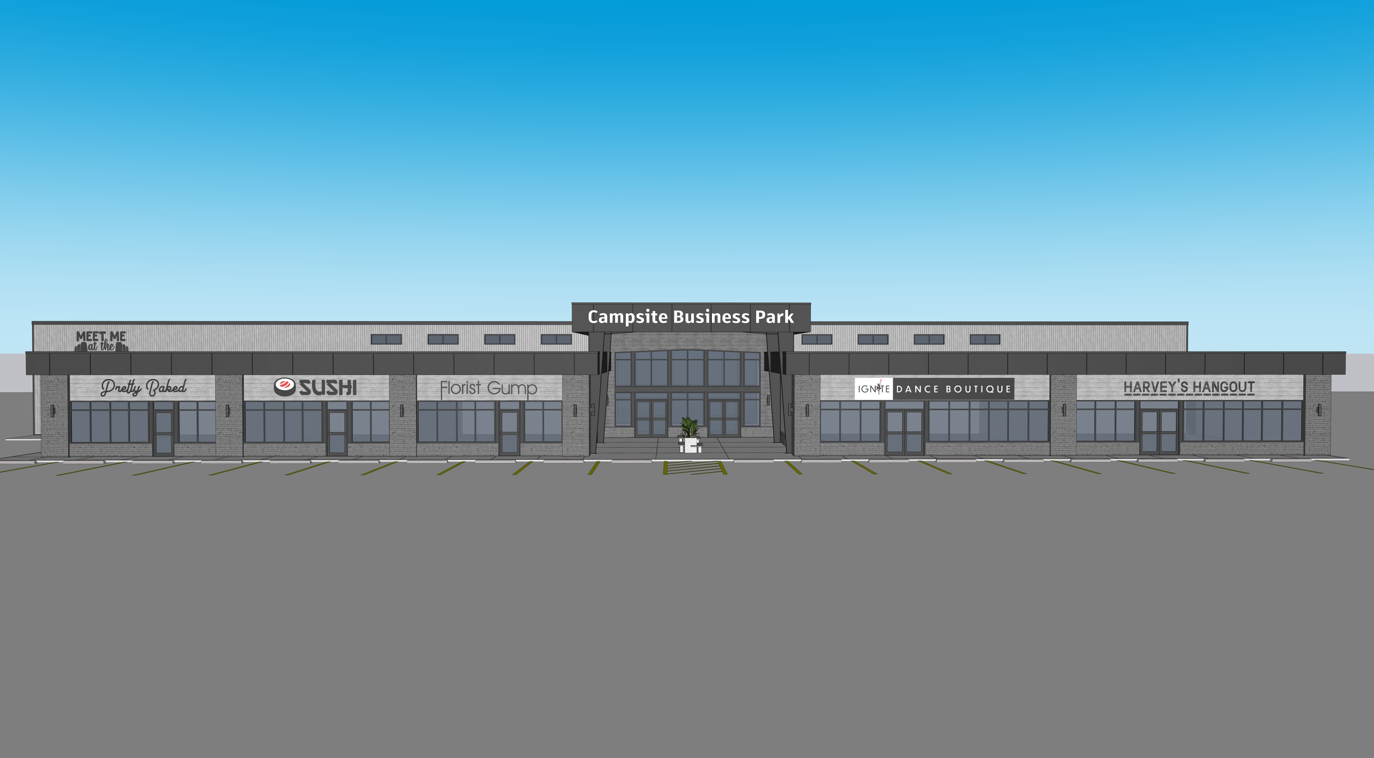 exterior shot brick columns black metal canopy facade horizontal wood grain wood cladding black framed windows and doors
