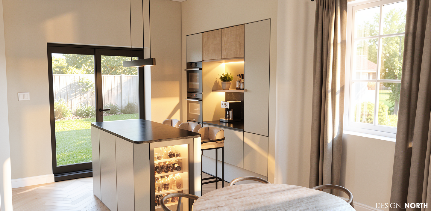 add plants plates and glasses to shelves