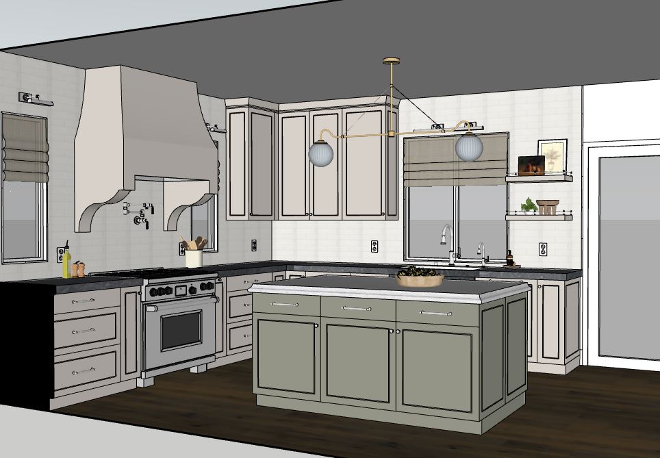 can you make sure all light fixtures are on and make the hood plaster and can you make the island countertop only white marble