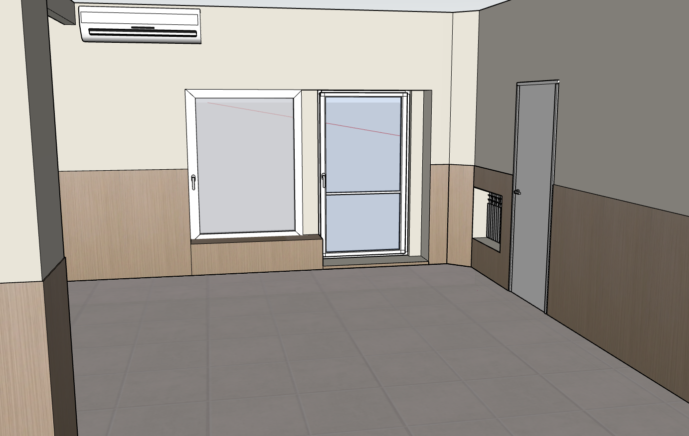 add a ceiling since this is a restaurant include a table and chairs add curtains by the windows and some led lighting