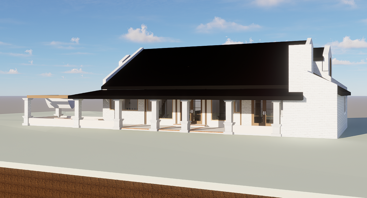 hero render of this house in uruguay grasslands calm soft light render showing this beautiful house smoke coming from chimney and birds playing in the skies above