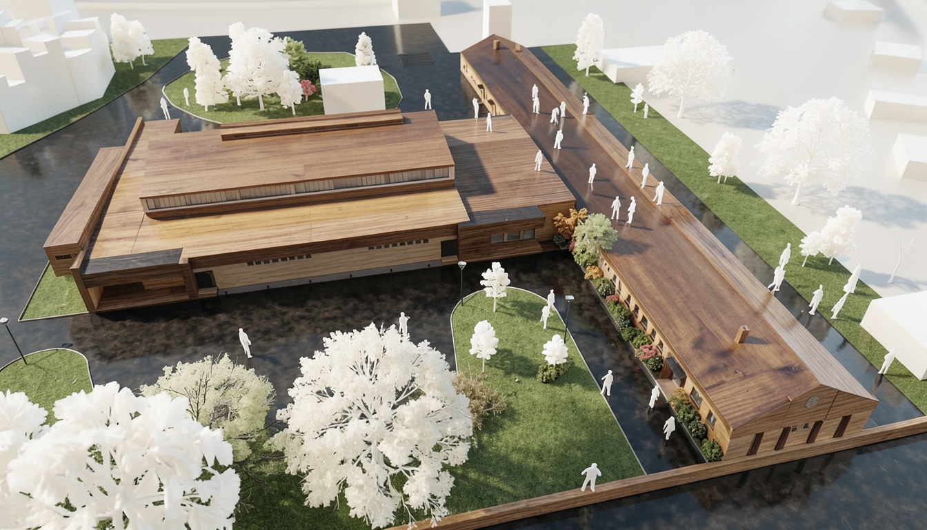make it wooden architectural maquette trees from white plastic people silhouettes white plastic change grass clour to grey