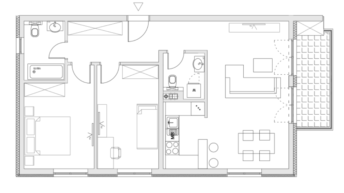 convert the provided 2d architectural floor plan into a highly accurate 3d apartment visualization critical instructions do not violate preserve exact geometry from the floor plan do not change layout proportions wall thicknesses or room sizes do not add remove or reinterpret architectural elements every wall door window and opening must match the plan precisely furniture must only be placed if clearly defined in the plan do not redesign interior or improvise layout this is a translation task from 2d to 3d not a design task spatial parameters floor to ceiling height 2 8 meters wall thickness follow drawing exactly and make the cross section gray door and window positions exact placement from plan output type top down 3d floor plan bird s eye view slight perspective like real estate visualization visual style neutral realistic materials light wood flooring white walls minimal textures soft global illumination natural daylight evenly distributed clean readable composition render quality photorealistic sharp details realistic shadows and reflections balanced exposure camera top view with slight angle negative constraints no artistic reinterpretation no layout changes no added decorative elements not present in plan no unrealistic proportions no random furniture no stylization that reduces clarity of the plan the result must look like a precise built version of the provided floor plan not a conceptual interpretation