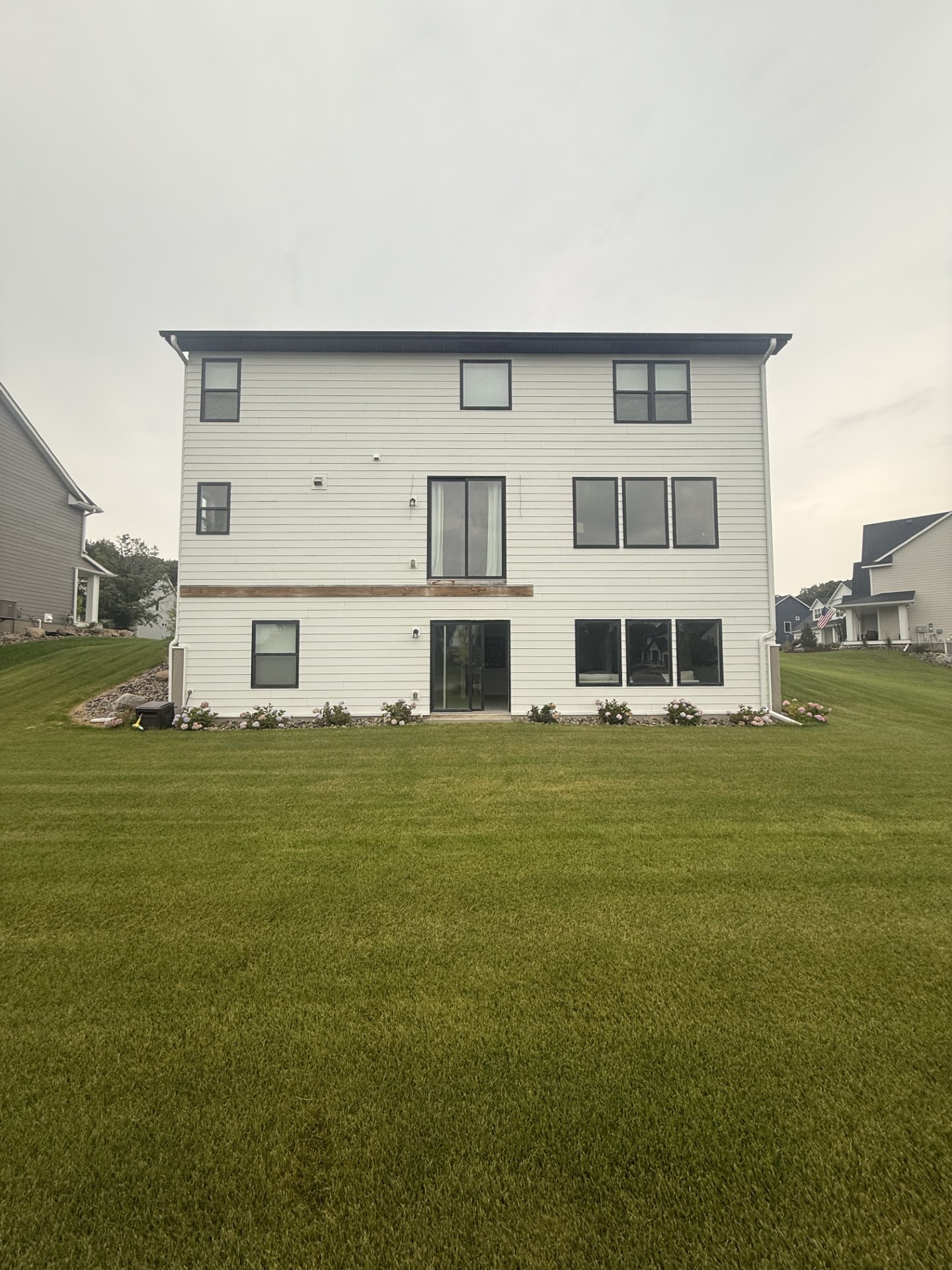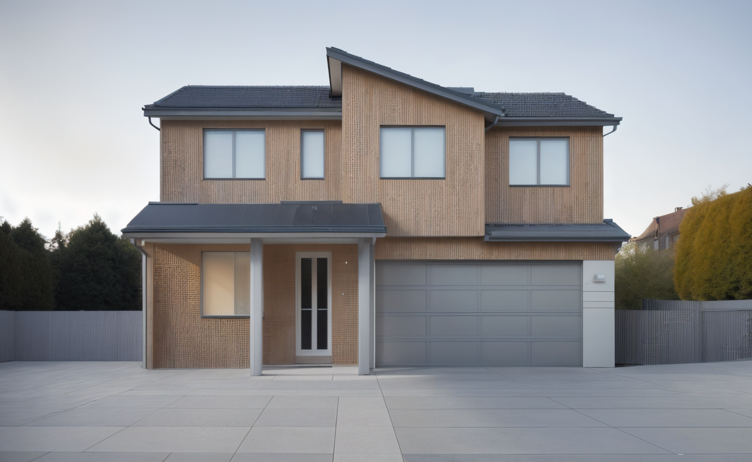 modernist exterior shot i want to add a deck to the back of my home i want half to be a covered porch and the other half to be open with a black railing i want it to be where the ledger board is architecture