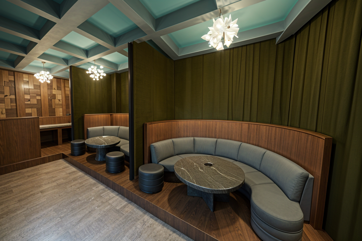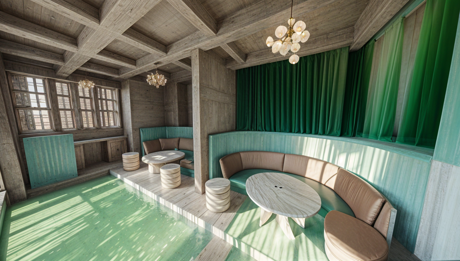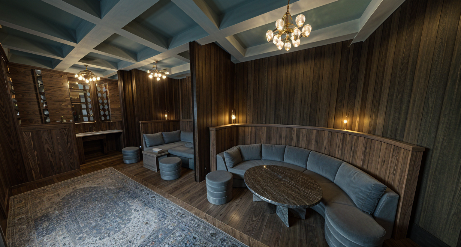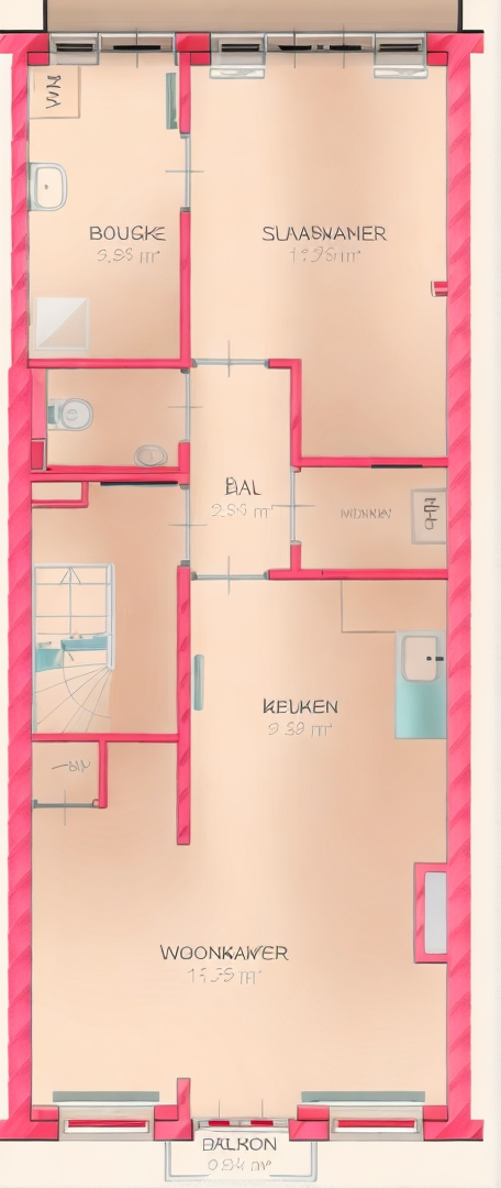 create a 3d rending of modern apartment of this exact floor plan and add rooms with its respective furniture floor in light oak timber floor except bathrooms convert to concept