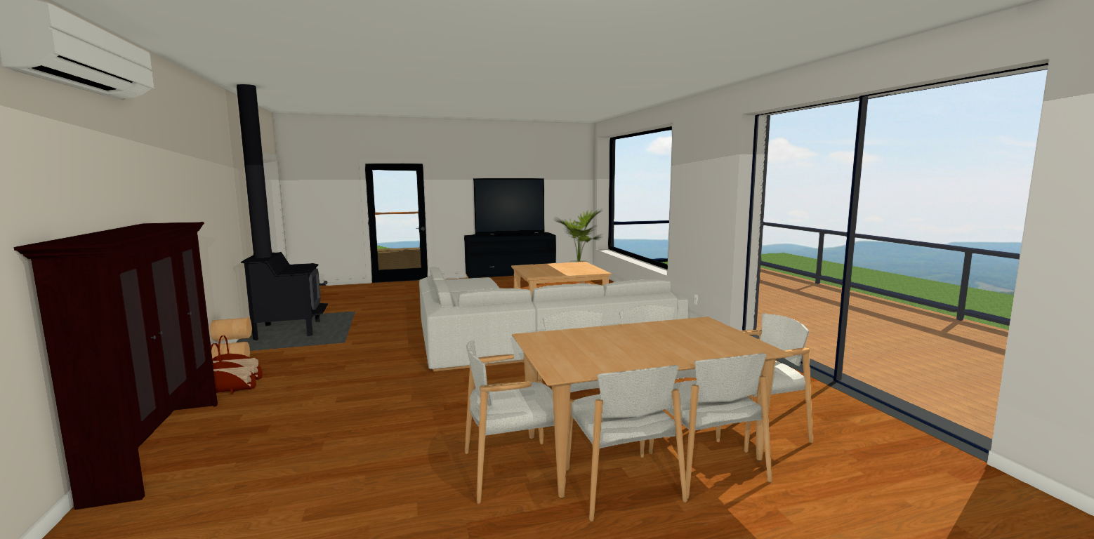 make the room looked lived in change floor to pine make wood stove a blaze king ashley