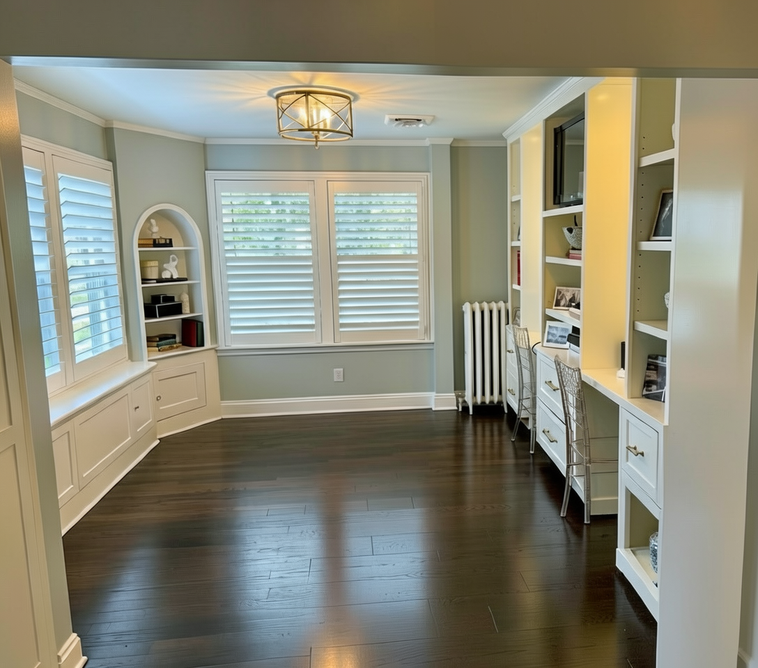 change the paint on the bookshelf on the right wall to a sage green