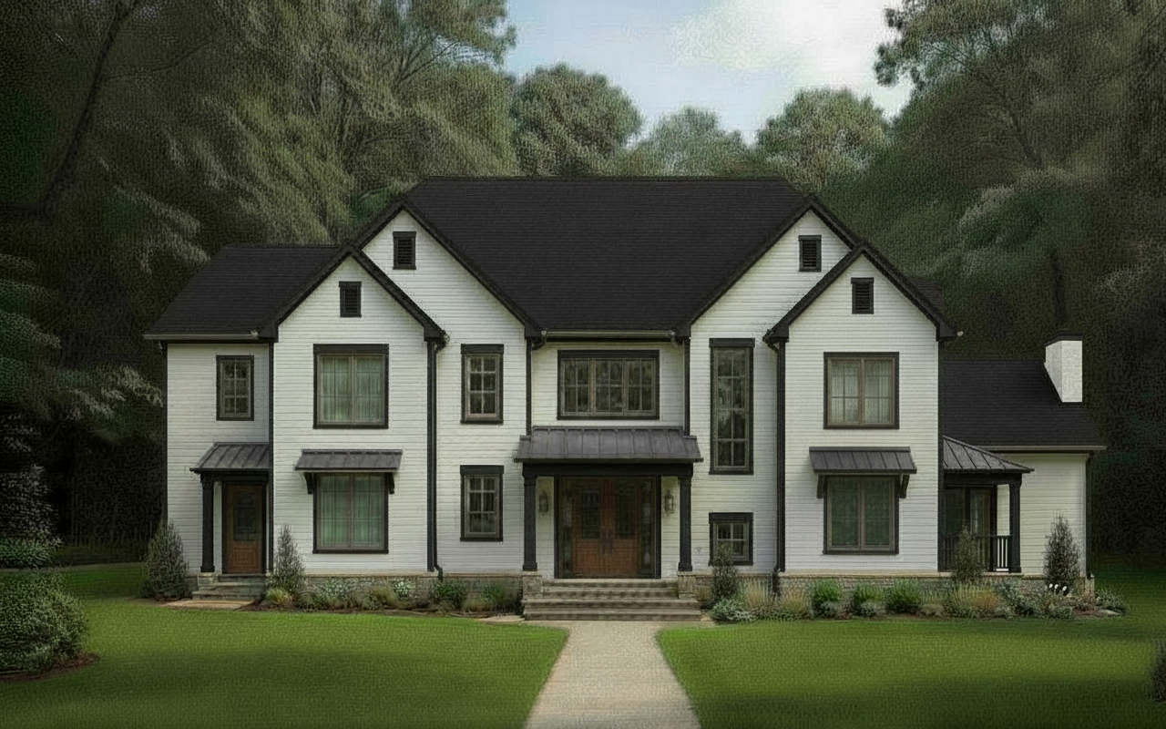 add an alcove front porch while keeping the main centered front window where it is