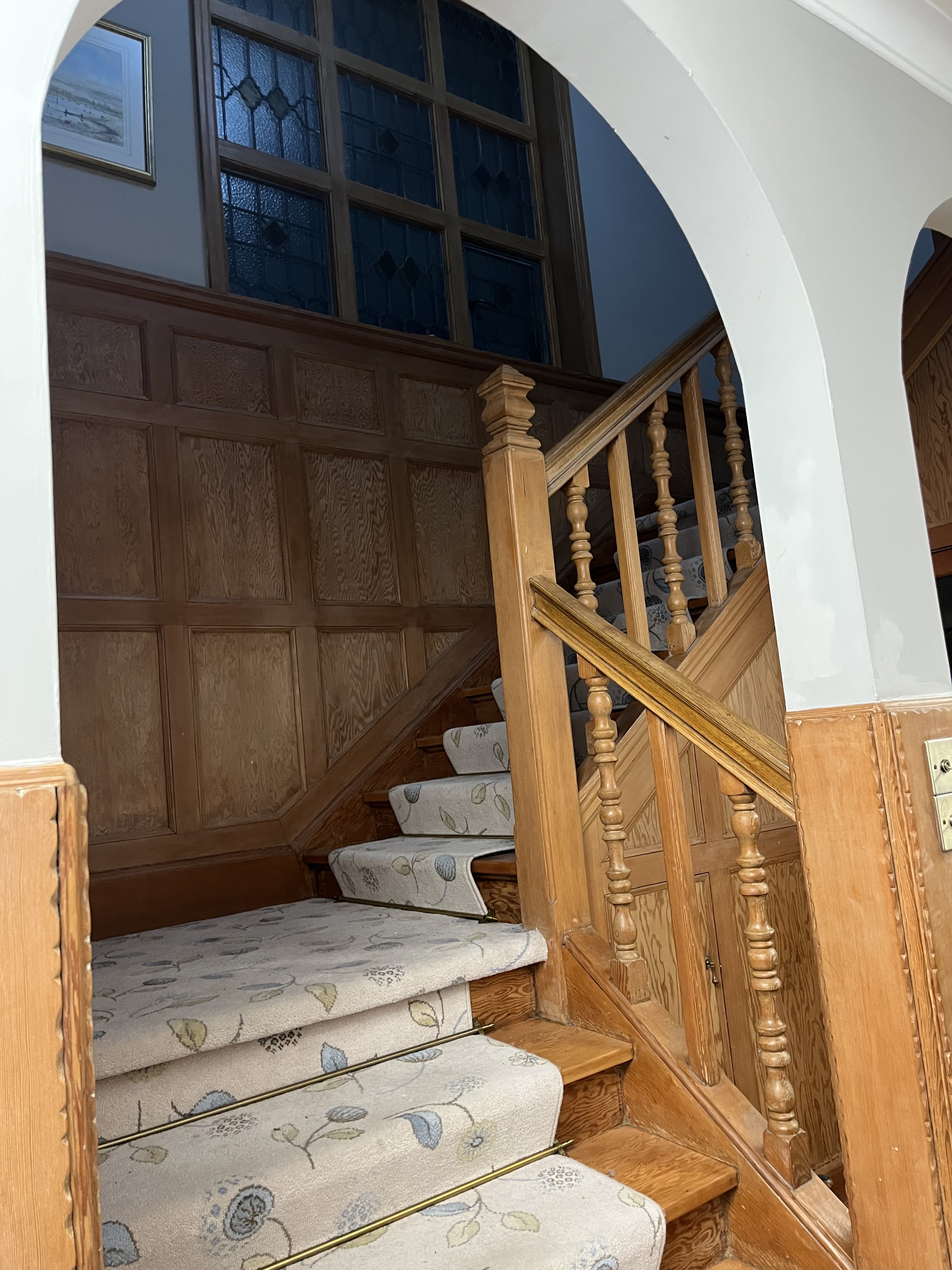 have springer spanels running down stairs