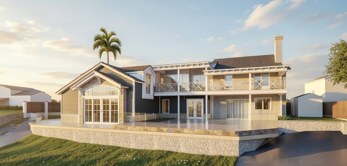 add natural lighting make look realistic add a driveway to the garage add nice landscaping and surrounding trees add furniture onto the deck