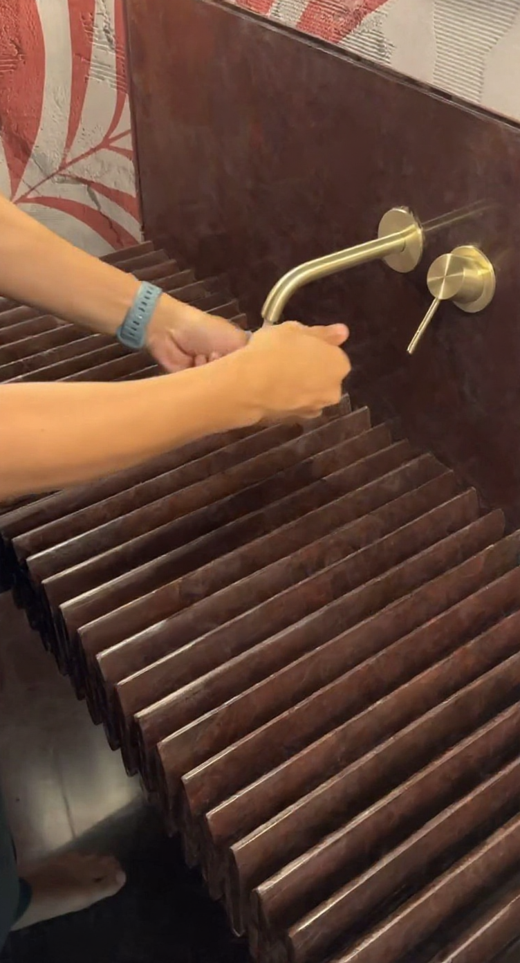 render this dining room with three walls the center wall has a soffit that goes up to a skylight apply to the ceiling the paint color from this source https www benjaminmoore com en us paint colors color 2113 40 cinnamon slate apply the wallpaper from this source https bradleyusa com products cielo etereo wallcovering pos 1 sid ad839c5cb ss r add two open doorways on both sides of the backwall move the doorways to the backwall keep everything the same but make all walls white