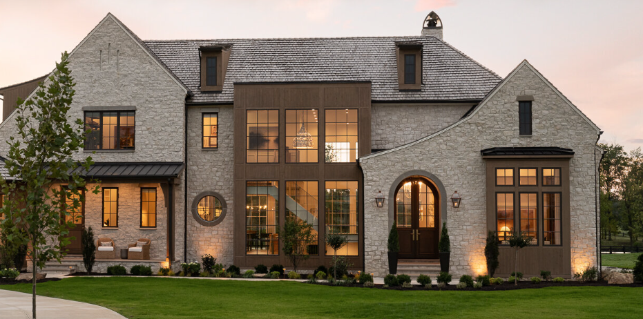exterior shot do not change the structure of the house but please make the style similar to the moodboard