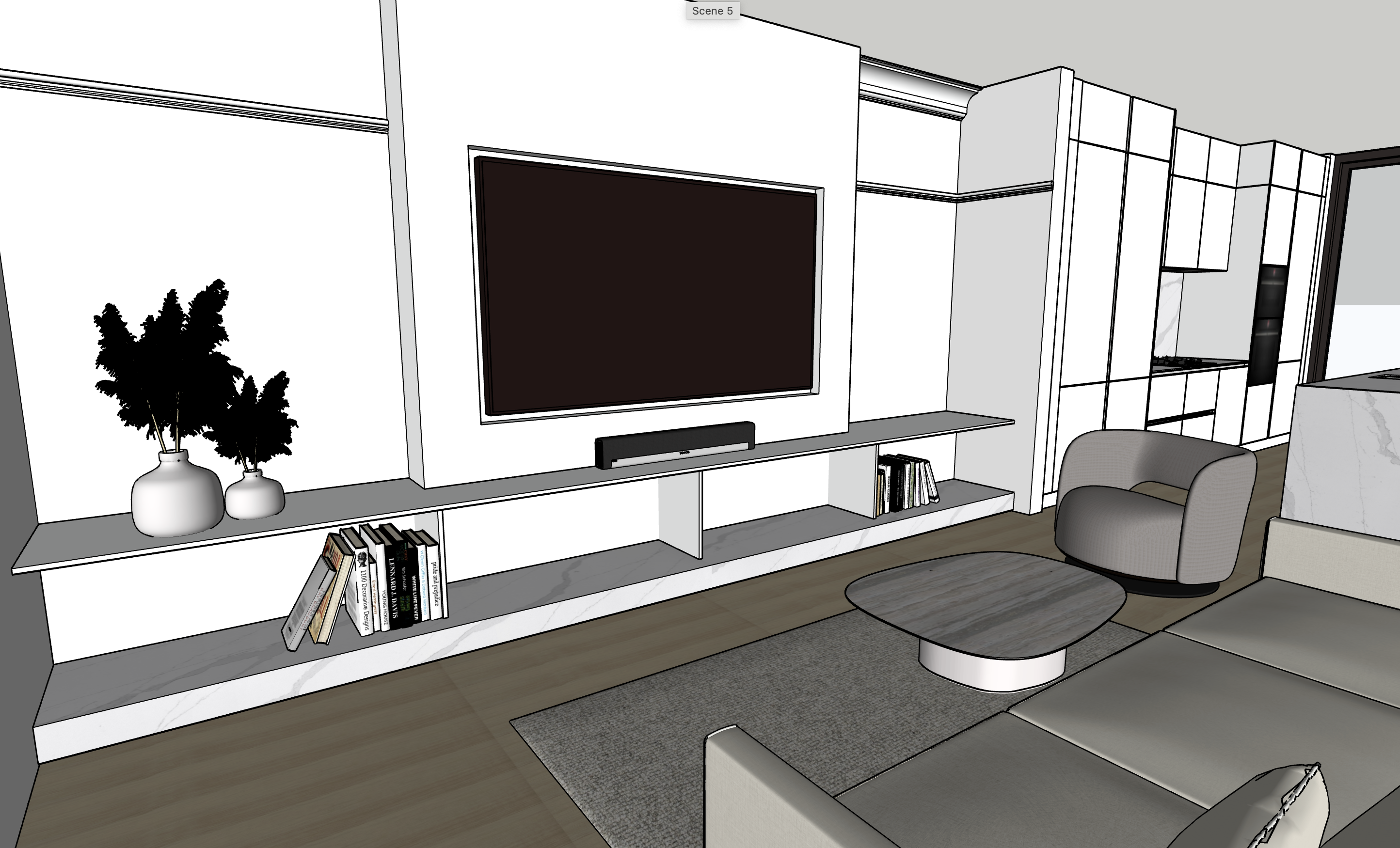 make this a light day shot with beige tones everything in a neutral pallette floor to be a light white oak kitchen to all be white flowers to be foliage make it photo realistic