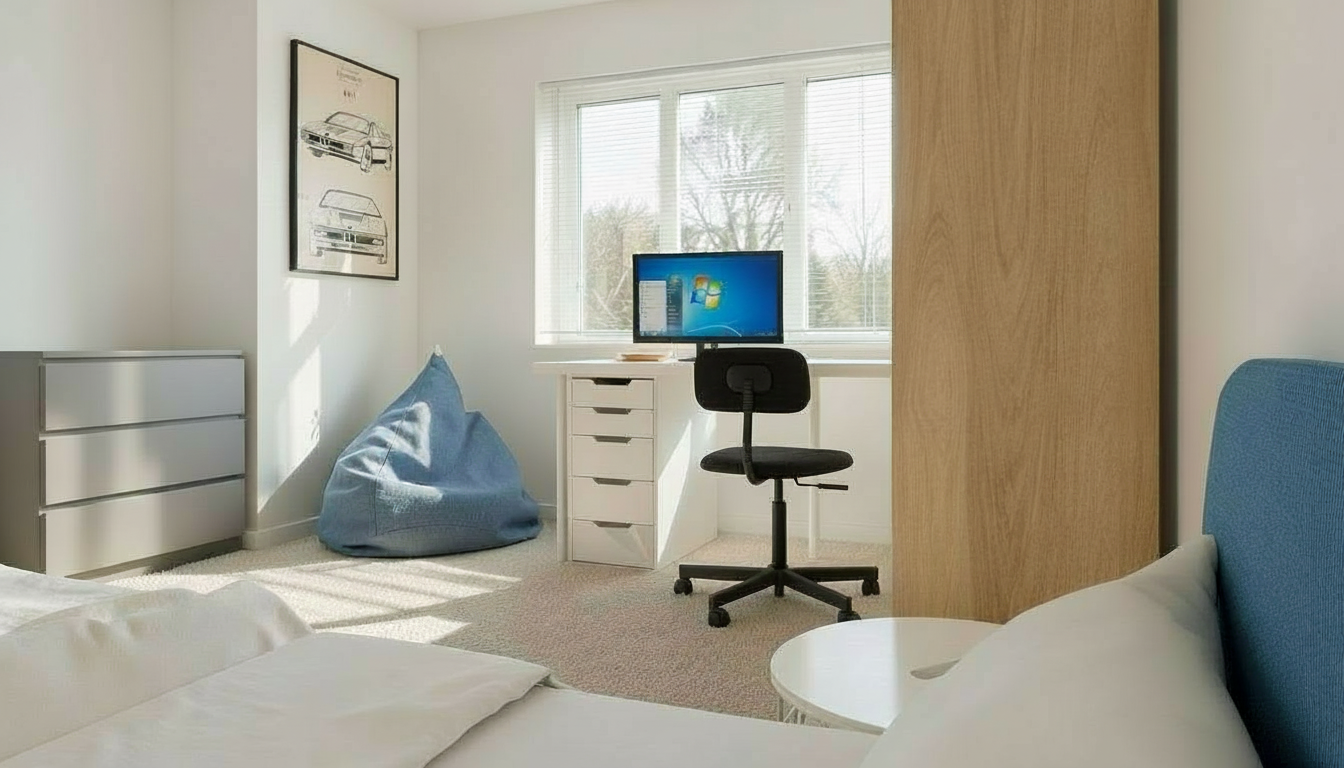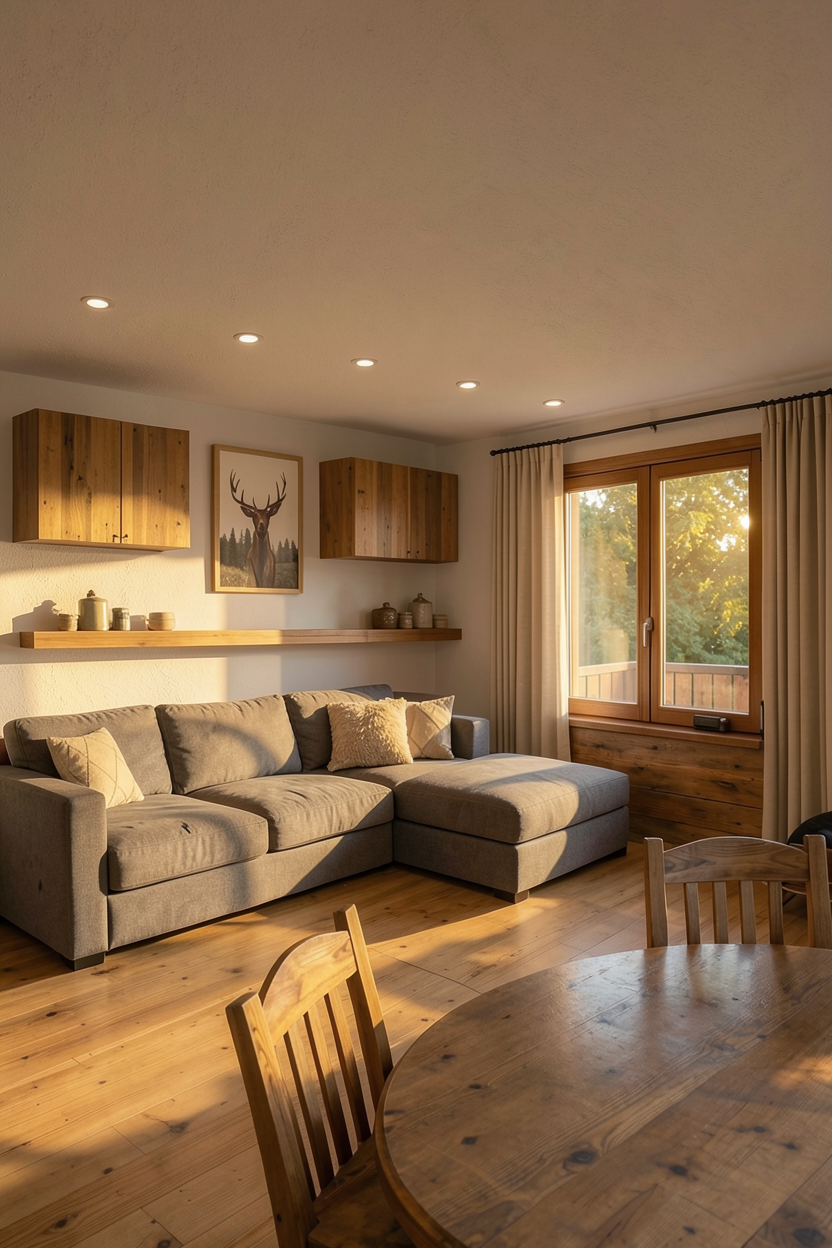 replace the window blinds with a fabric roller blind lowered halfway down the window in a color matching the existing pouf under the window in the picture