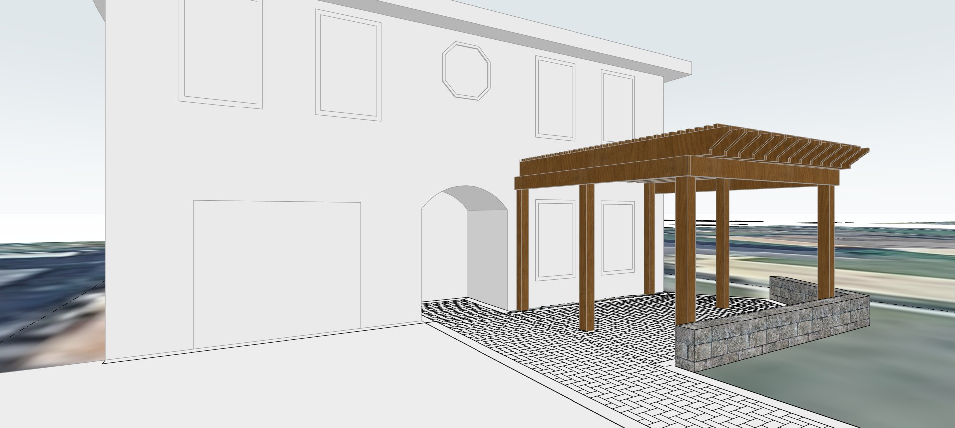 this is a brick paver and wood pergola design we are tropical patios an outdoor design company in south texas