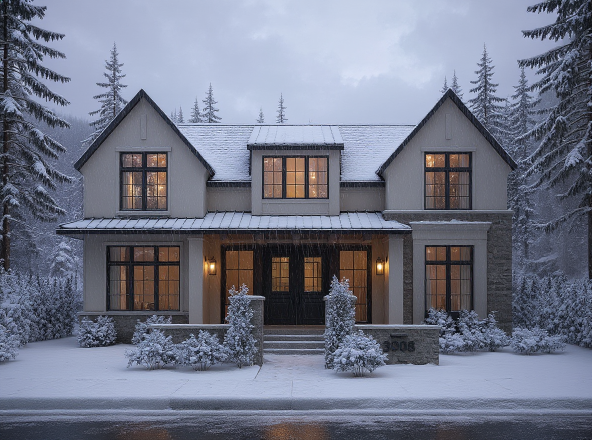 exterior shot summer vibe add trees between the buildings grass evenly gray upper facade asfalt in front architecture