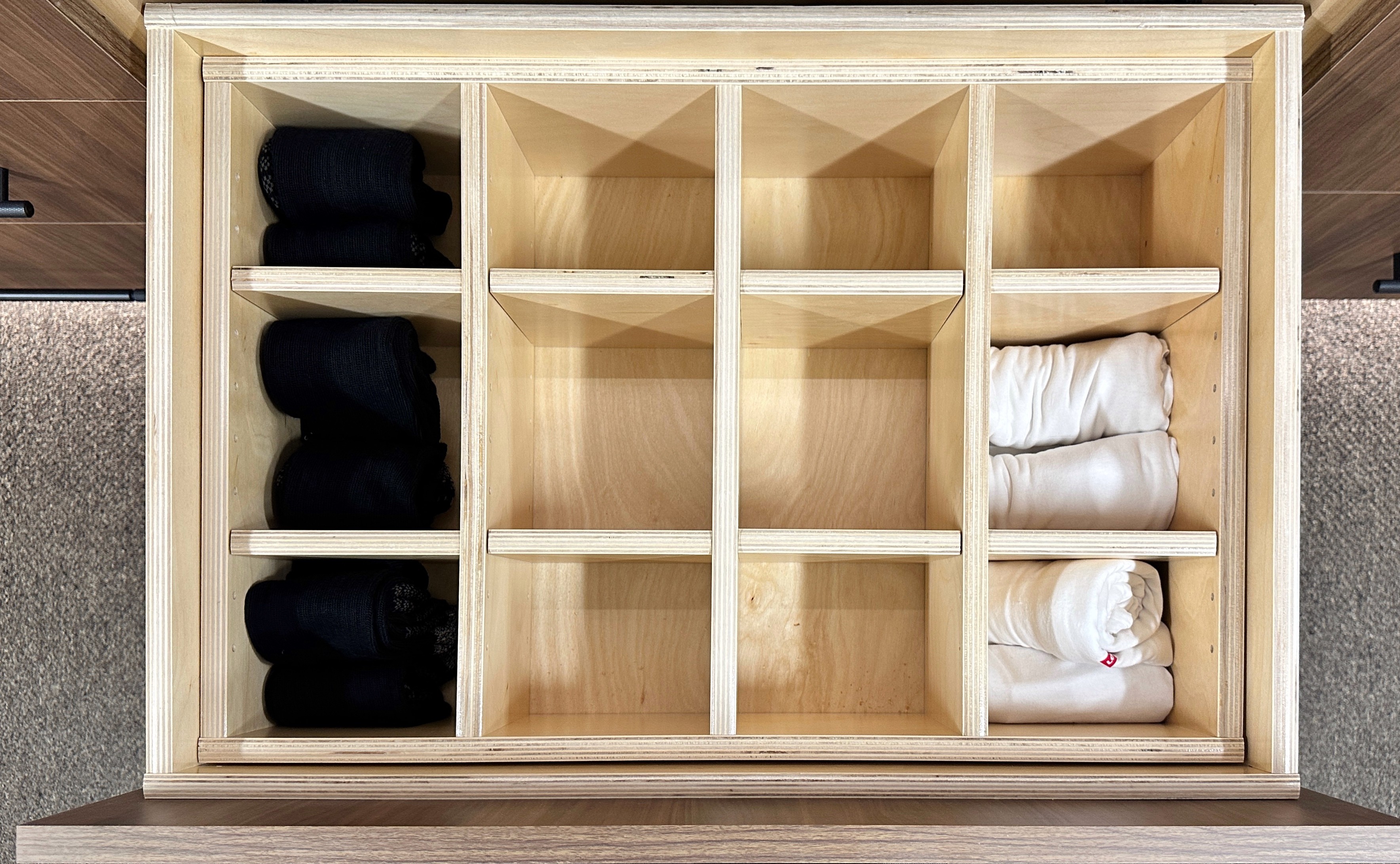 make the lighting natural for a closet fill the open cubbies with folded t shirts that are simple in color change the carpet to a light color
