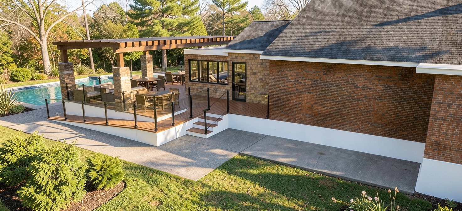 a sauna in a modern garden add some trees in the background use a soft light set during the sunset use some warm lights coming from the greenery