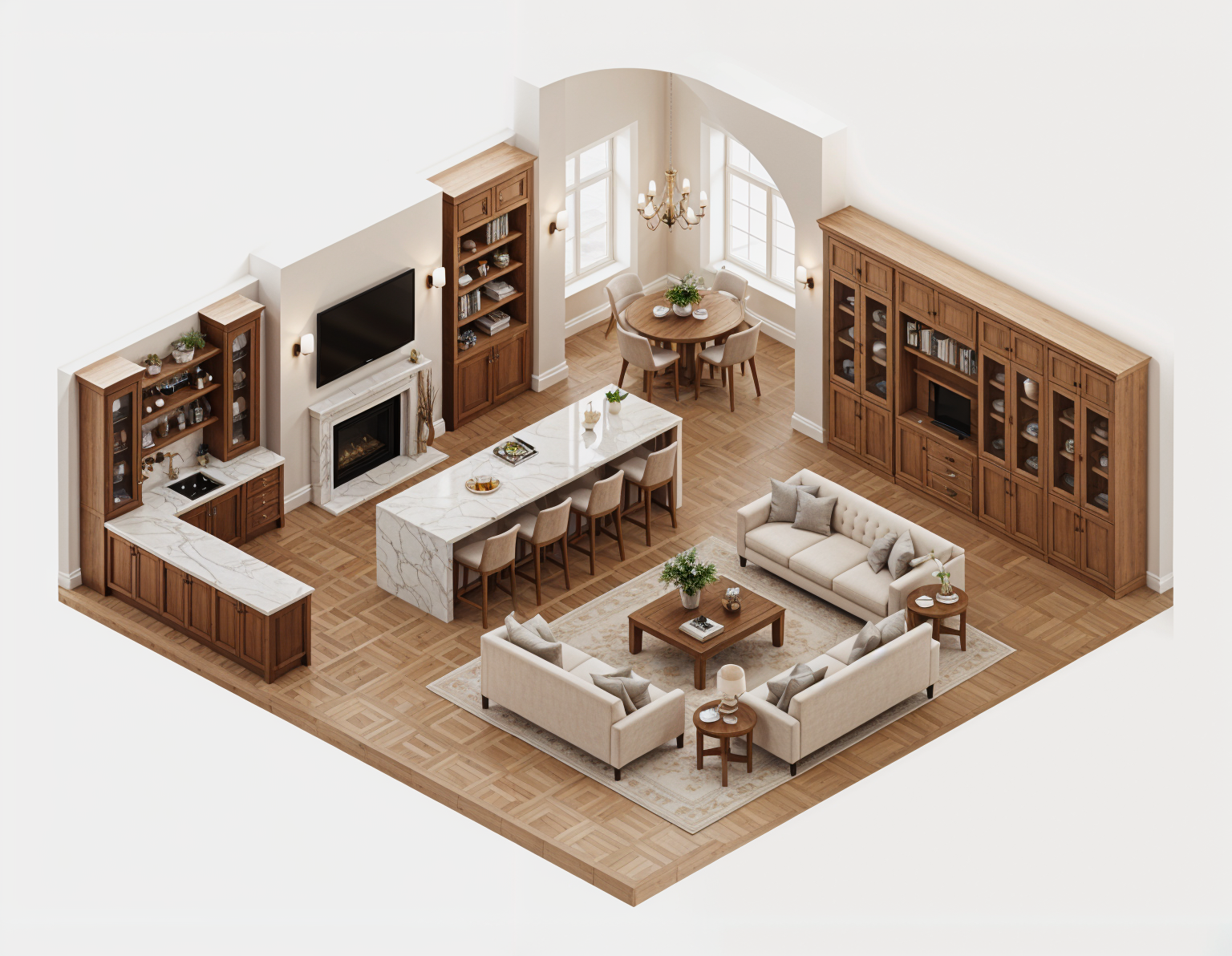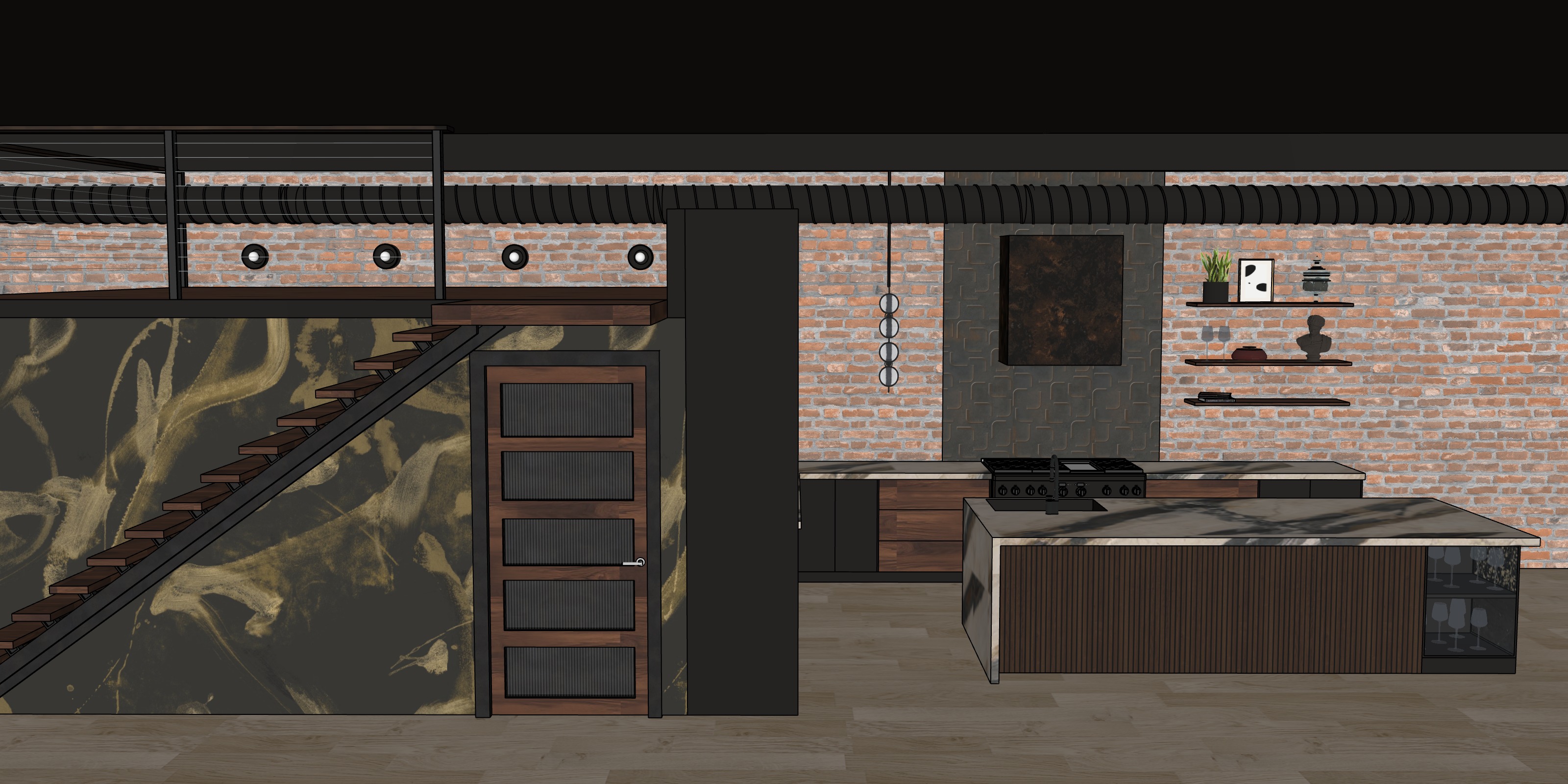 add realism high end materials open joist black ceiling sunset lighting keep rest of materials in model the same