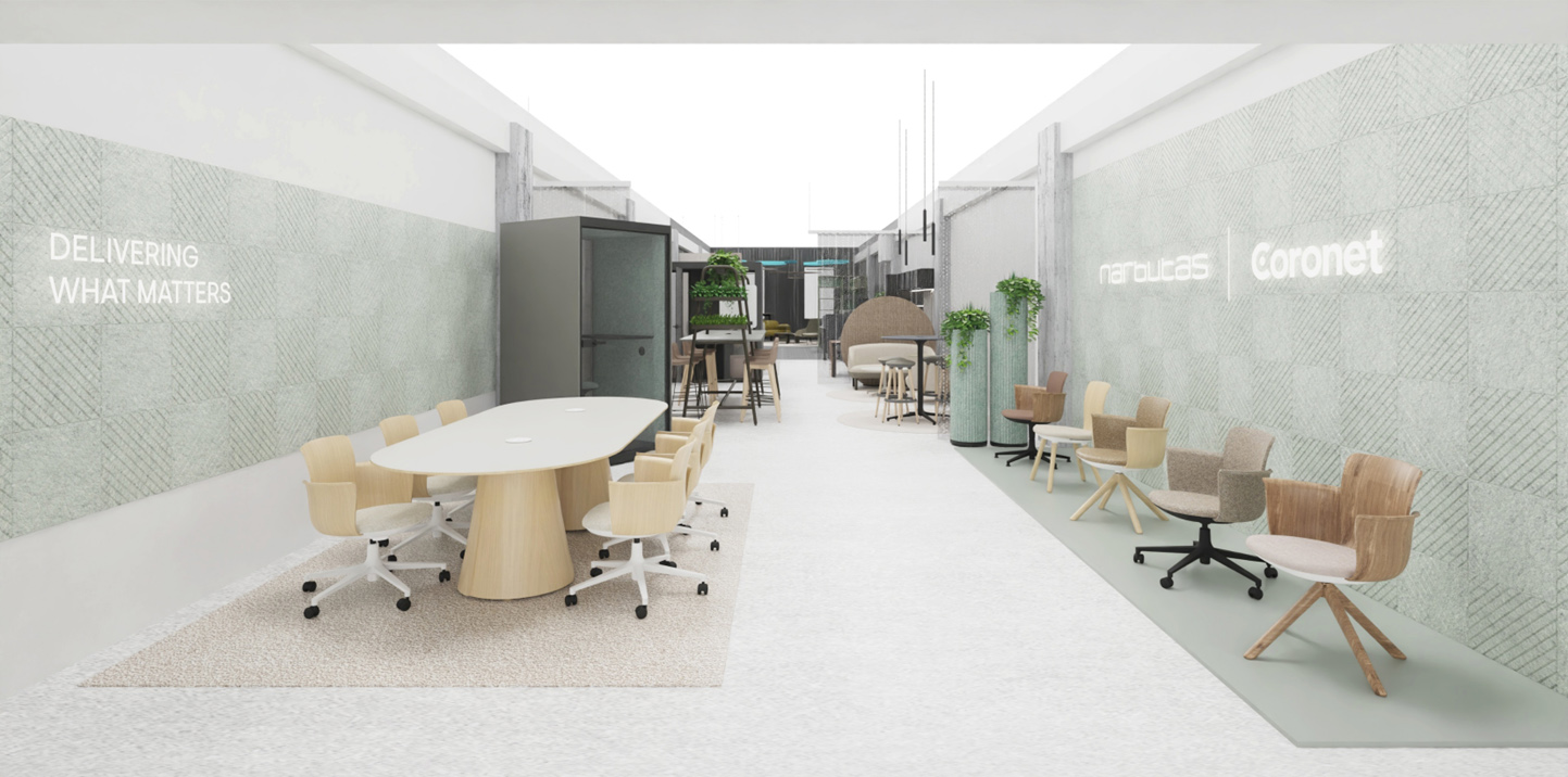 make it look photorealistic cieling is dark concrete with indusrtial style visible comunnications put some artificial spotlights on chairs and desk in the front