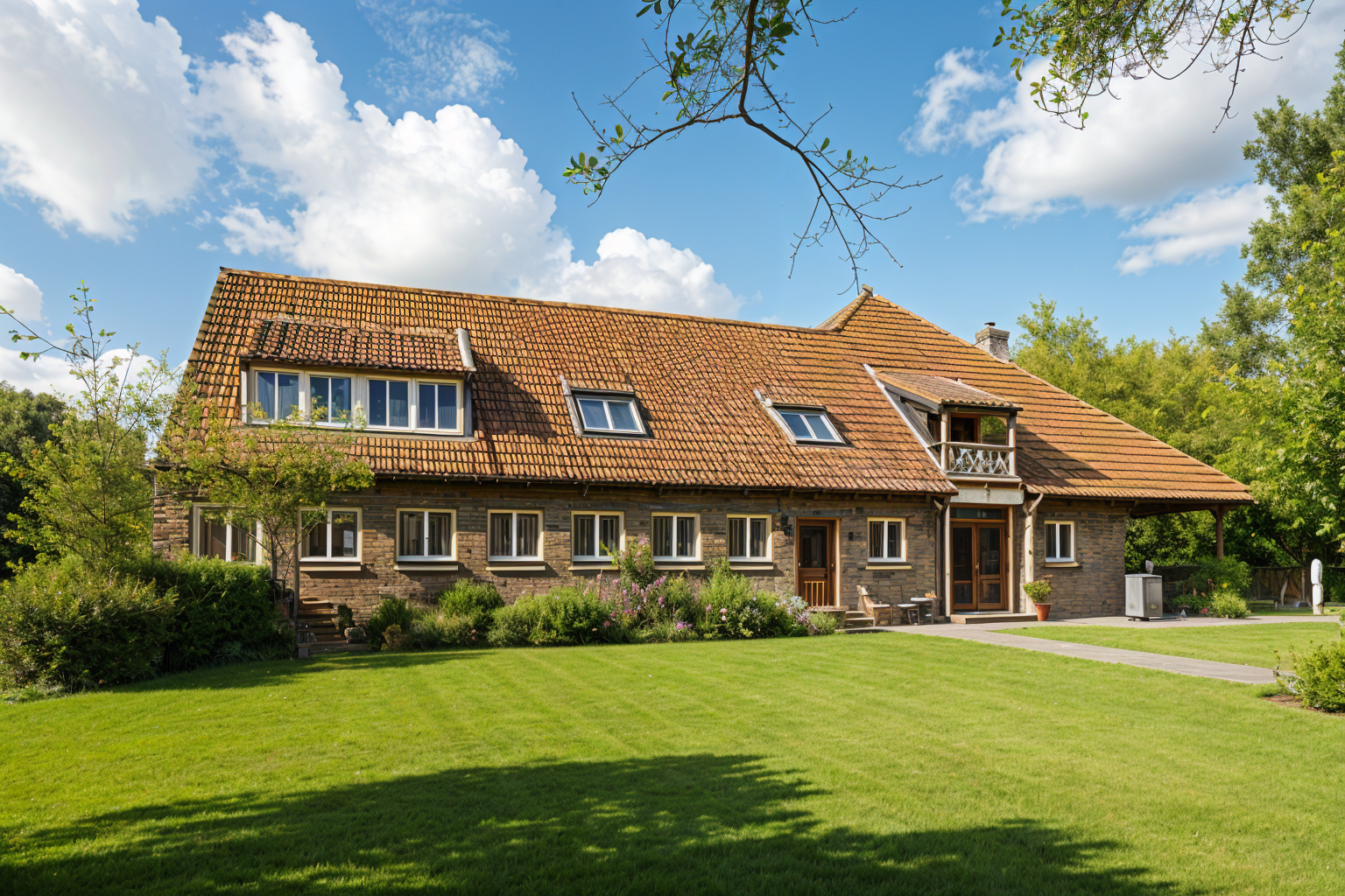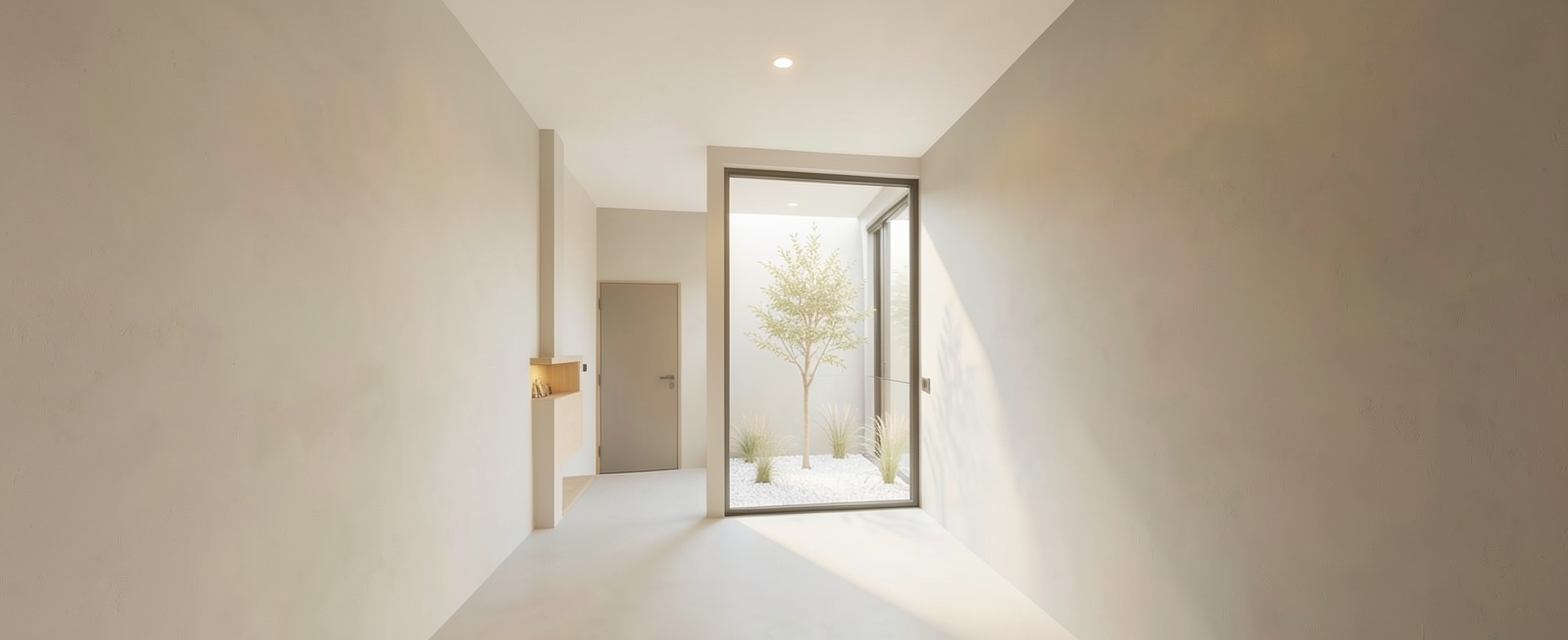 make this photo more realistic don t change any geometry update the herringbone pattern on the cabinetry to fluted door fronts in a medium grain use a grey steel faucet update the range to stainless steal add a 6 feet x3 feet island with fluted wood and waterfall countertop plus 3 skylights above it update the countertop and backsplash halfway up the wall to a white and gray ceasarstone use a warm grey color from benjamin moore for the rest of the walls add in a refridgerator to the west wall at the end of the counter run on the south side make the 3 square skylights above the island 1 foot on each side add 3 minimalist counter stools in charcoal black metal that have a low profile back add in a roman shade over the window in an black and white mainly black small medium geometric pattern add a hapa teenage boy with black hair and brown skin doing his homework at the island wearing sweats and a blue teeshirt with his back to us add a fruit bowl in a large black clay bowl to the island have the cabinets run to the end of each wall make the back door a raise panel door in swiss coffee from benjamin moore add a white cast iron pot to the stove add bright orange and yellow and black japanese inspired dish towels near the sink add a japandi vibe to the scene add a black and white doormat in front of the back door that has an abstract botanical japanese pattern on it make the hood a white color paint the ceiling the same color as the walls add a cute small dog on a nice flat woven black and white rug next to the island