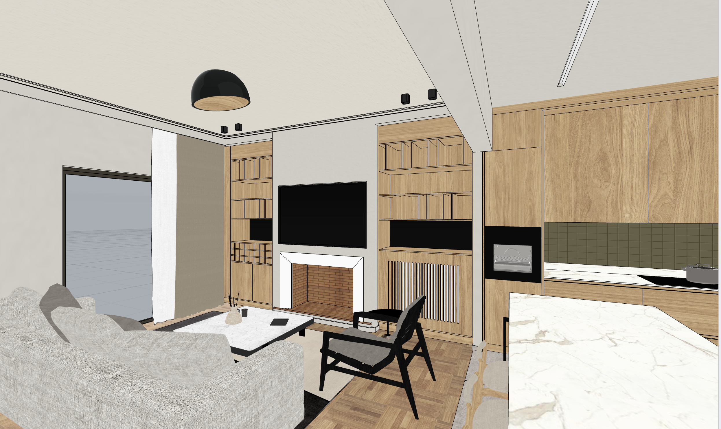 add decorative items books inside shelves keep the excisting lights do not add different types physical day light keep existing materials high resollution image switch off interior lights