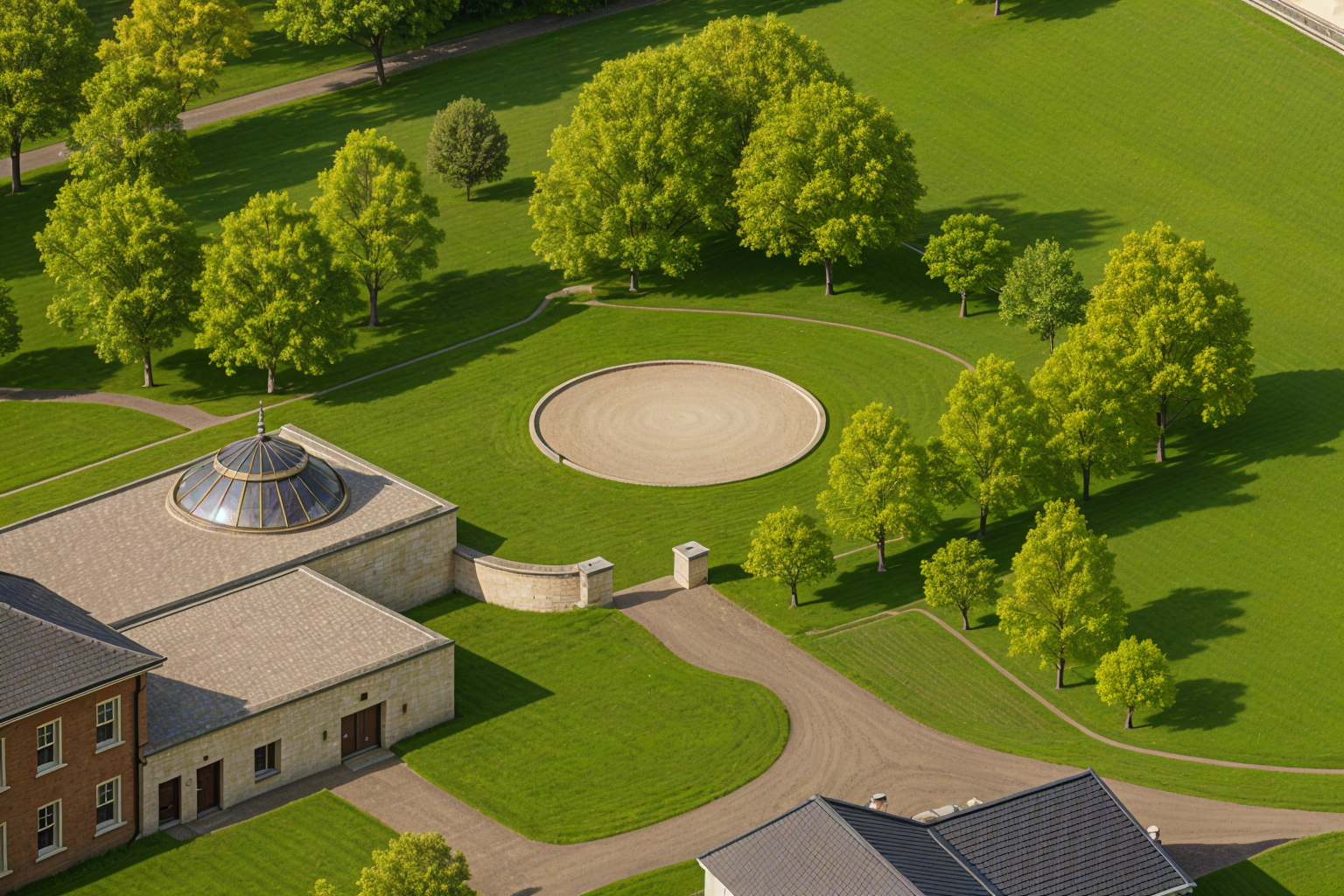 a modern minimalist bathroom with a serene luxurious atmosphere features a round black framed mirror above a sleek white vanity soft ambient lighting creates a warm inviting glow beige tiled walls and natural wood flooring add an earthy touch a frameless glass shower enclosure with a rainfall showerhead conveys elegance subtle textures on the ceiling catch the light creating a sophisticated checkerboard effect utilizes a neutral color palette soft beige matte black fixtures and warm white lighting for a calming spa like ambiance architecture