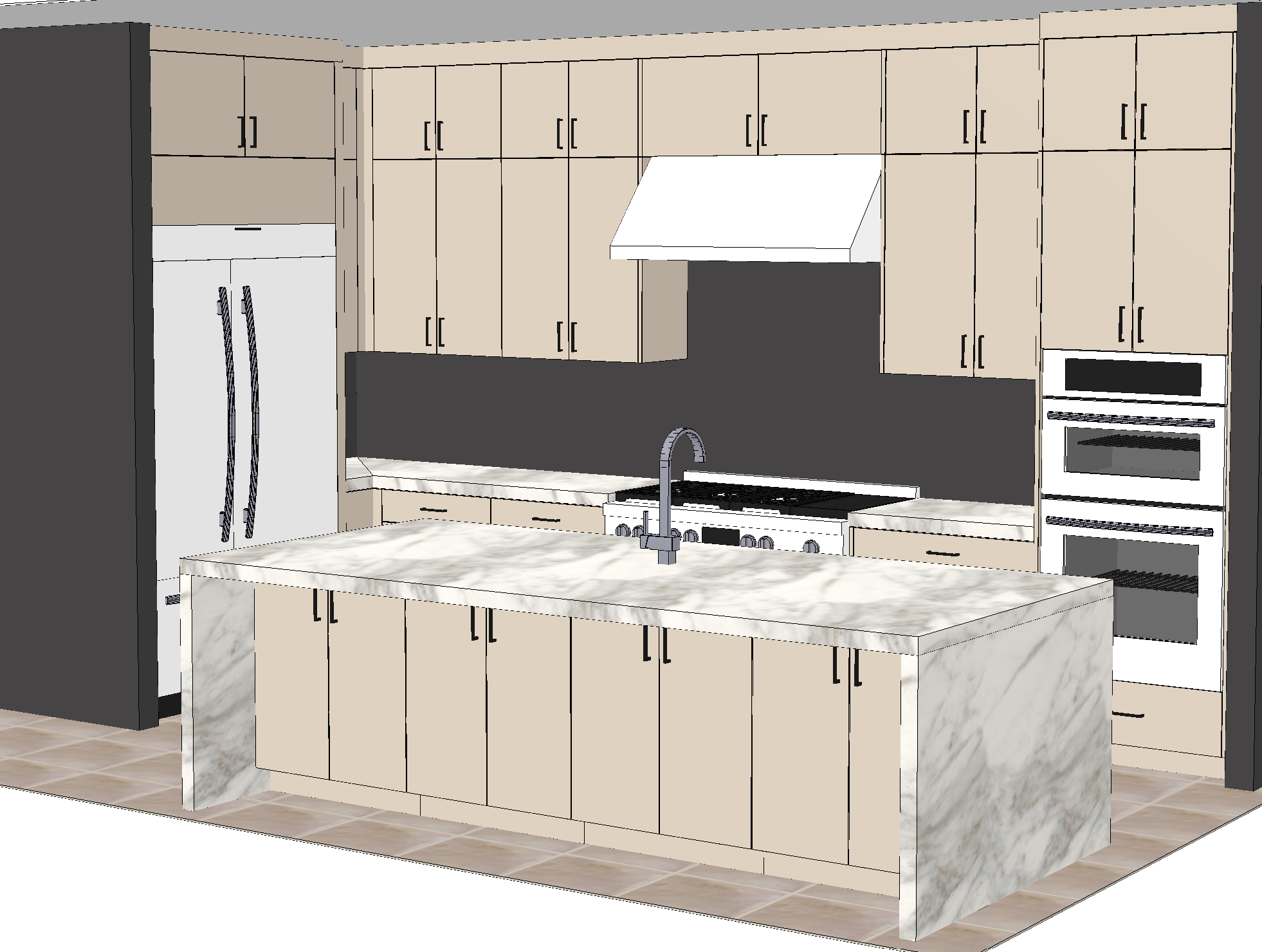 add stools on the backside of the island add a modern light above the island add a stone backsplash on the range wall to match counterops