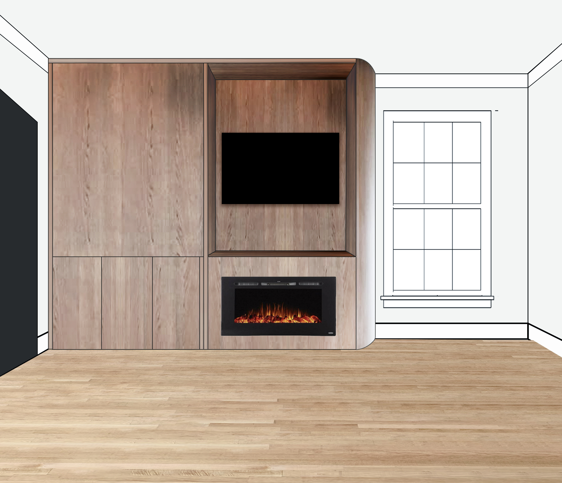 change the wood in this to be painted a very dark gray with a very subtle green blue undertone