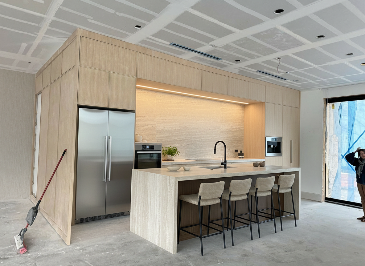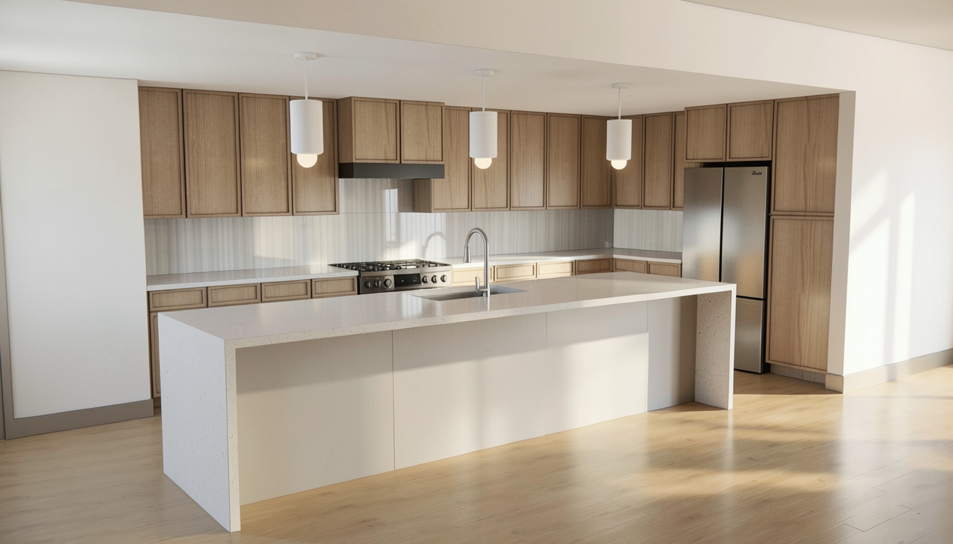 use the uploaded render as the exact base image maintain the original camera angle lens length perspective framing composition and spatial proportions exactly as shown do not alter architectural elements wall locations ceiling details millwork flooring layout window placement or built ins preserve all existing materials finishes textures paint colors tile stone wood tones and lighting design exactly as they appear maintain the same daylight direction shadow quality exposure and overall color temperature keep all furniture decor styling and layout exactly the same unless explicitly instructed otherwise do not reinterpret the design restyle the space modernize it or adjust proportions only modify the specific items that will be listed in the next prompt the goal is to enhance realism and material fidelity while preserving the original design intent 1 1 output should be ultra photorealistic with natural material depth accurate reflections realistic fabric texture subtle imperfections and true to life lighting update the finish on the face of the island to match the cabinetry this should be a flat panel