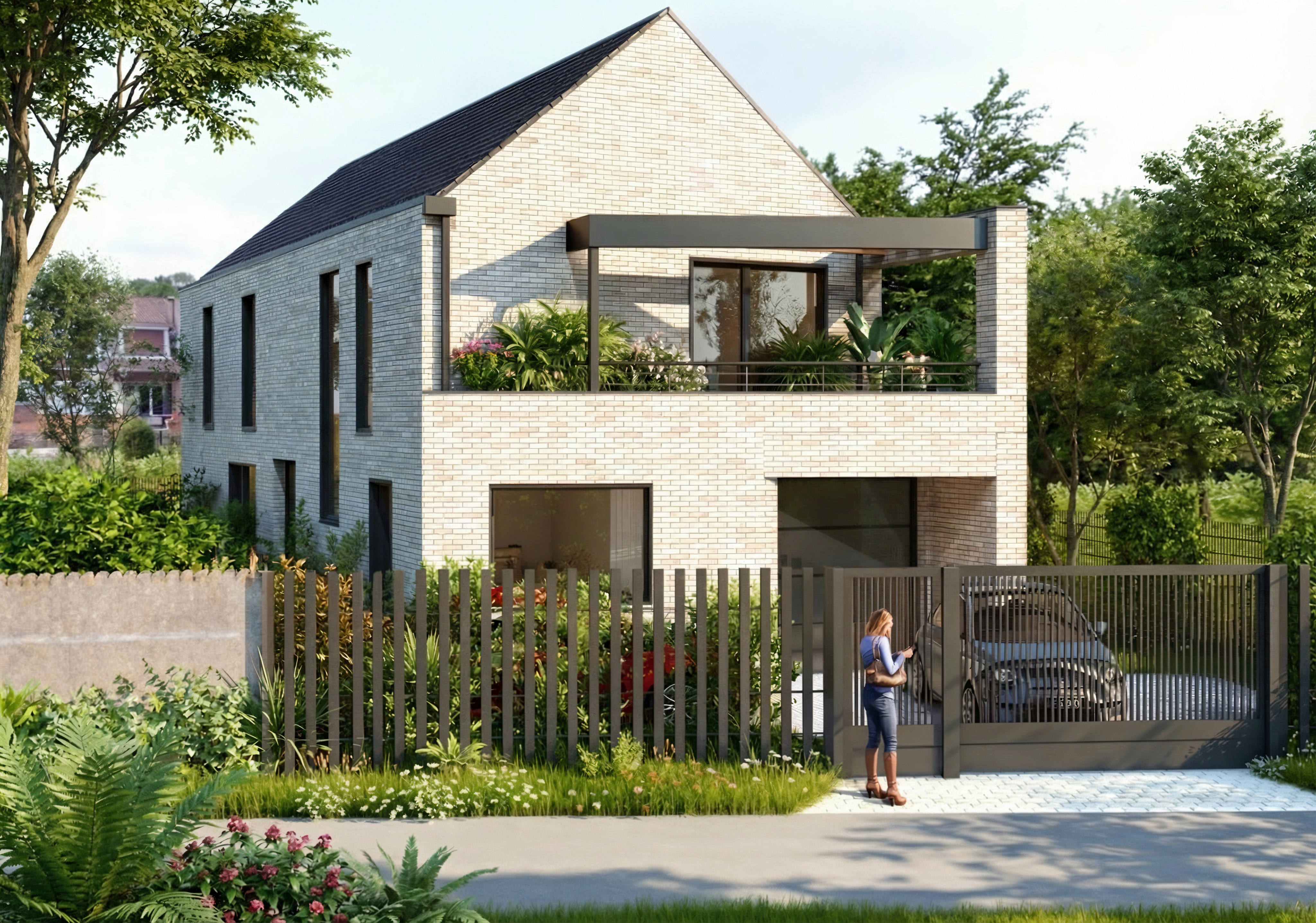 architectural presentation rendering in a hand drawn style using loose ink linework with visible pen strokes and slightly irregular outlines soft watercolor washes for color with muted natural tones greens warm stone light blues minimal shading relying on transparent layers and paper texture sketchy expressive vegetation and trees with gestural strokes lightly rendered human figures for scale not highly detailed sunlit atmosphere with a bright sky and subtle cloud texture overall look is an architectural concept sketch warm illustrative and expressive rather than photorealistic resembling marker and watercolor on textured paper