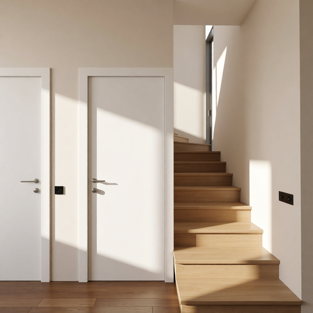 refine the existing render based on the reference image provided important this image must look like part of the same architectural project as the reference maintain visual consistency in materials style and level of realism remove window moldings main task remove all dark gray moldings around windows and doors keep the exact same number of windows and doors same size same position and same spacing only eliminate the moldings after removal the wall material must meet the window edges directly clean flush finish similar to the reference image do not modify window positions window sizes door positions proportions realism improvement improve materials lighting and shadows so the image looks more photorealistic and less like a collage fix inconsistencies and improve integration between elements reference control use the reference image only as a guide for style and composition consistency no moldings do not copy geometry or design elements photorealistic high detail clean architectural style