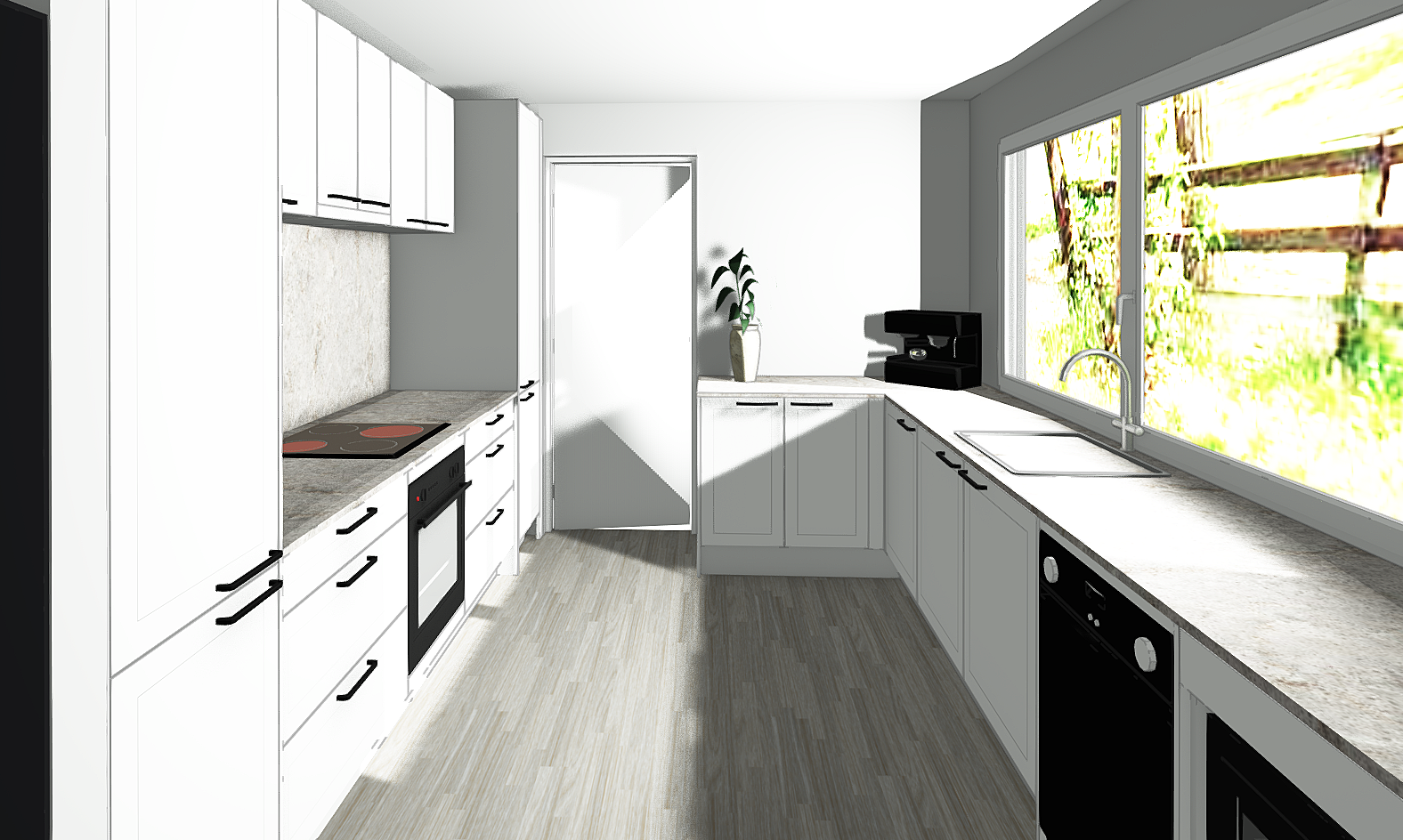 add lighting keep the stone the same change window vie to a backyard