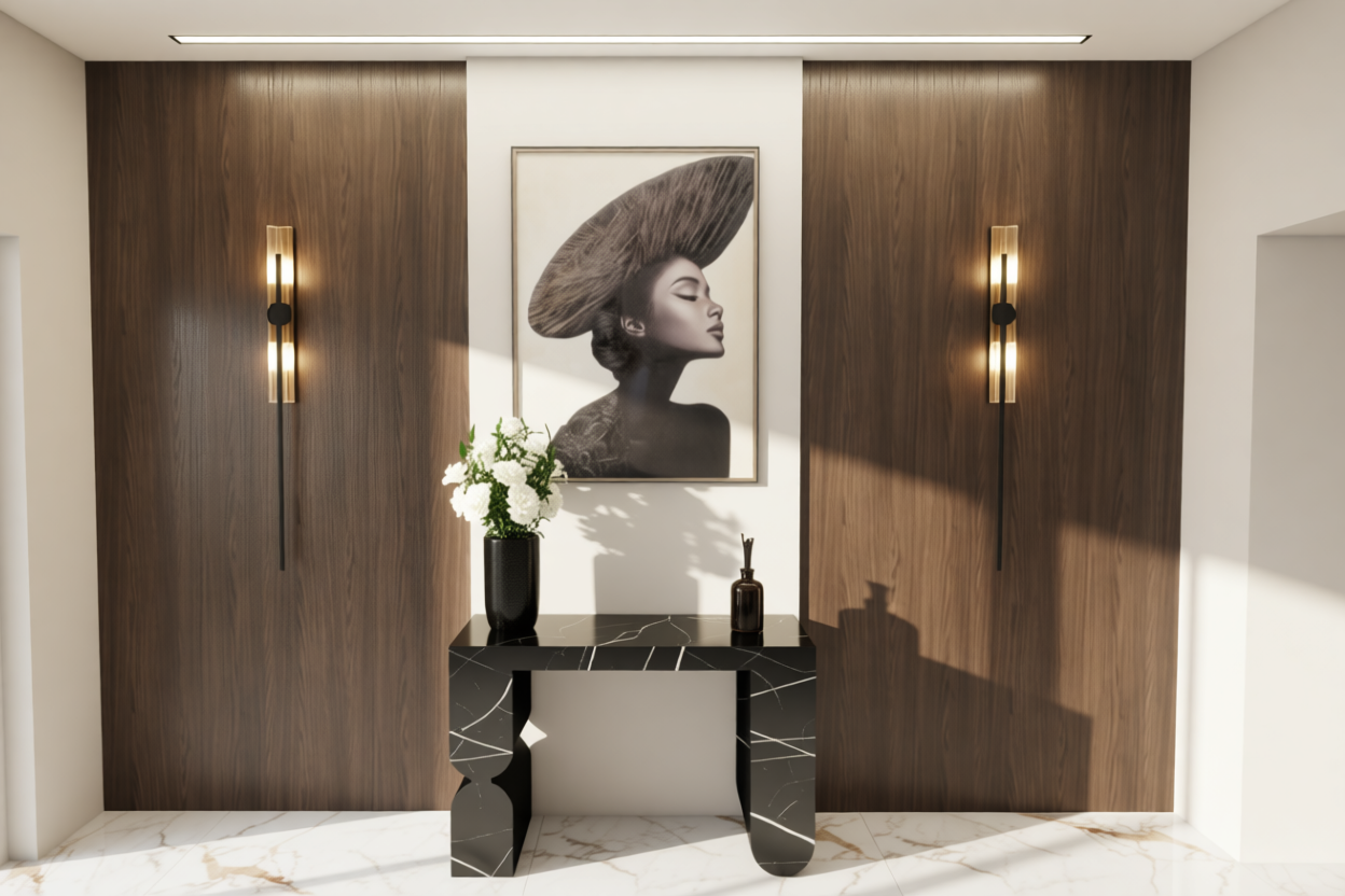 use the provided black and white elevation drawing as the exact geometry reference do not change proportions roof shape window placement or decorative elements preserve all historical details create a photorealistic winter render of a restored historic wooden house in northern europe facade deep warm brown painted wood rich chestnut tone visible natural wood grain horizontal siding on first floor vertical siding on the gable carved wooden decorative frieze under the eaves all window frames trims corner boards and decorative details in matte white roof dark grey matte metal roof realistic snow accumulation along roof edges subtle snow on window sills windows traditional white wooden frames warm yellow interior light glowing from inside slightly frosted glass edges environment fresh snow on the ground soft footprints leading to the entrance cold blue ambient winter light light snow falling in the air very subtle pale overcast sky lighting cinematic blue hour just after sunset warm interior light contrasting with cold exterior soft shadows volumetric winter atmosphere mood cozy nordic heritage elegant historic restoration high end architectural visualization dramatic yet refined camera eye level 3 4 angle slightly wide lens but no distortion ultra realistic 4k archviz award winning architectural visualization cinematic lighting high dynamic range subtle film grain