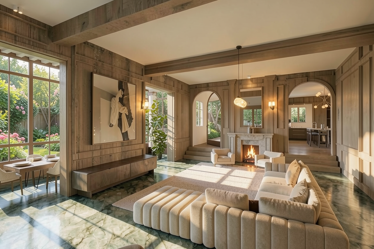 make it more photorealistic and add some people living in the buildings