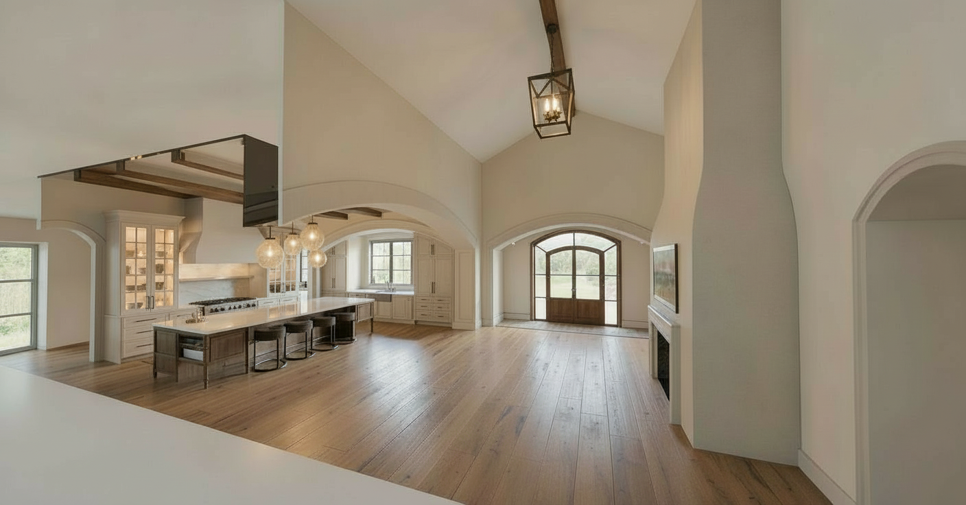 update the beams in the kitchen area to be painted a light taupe
