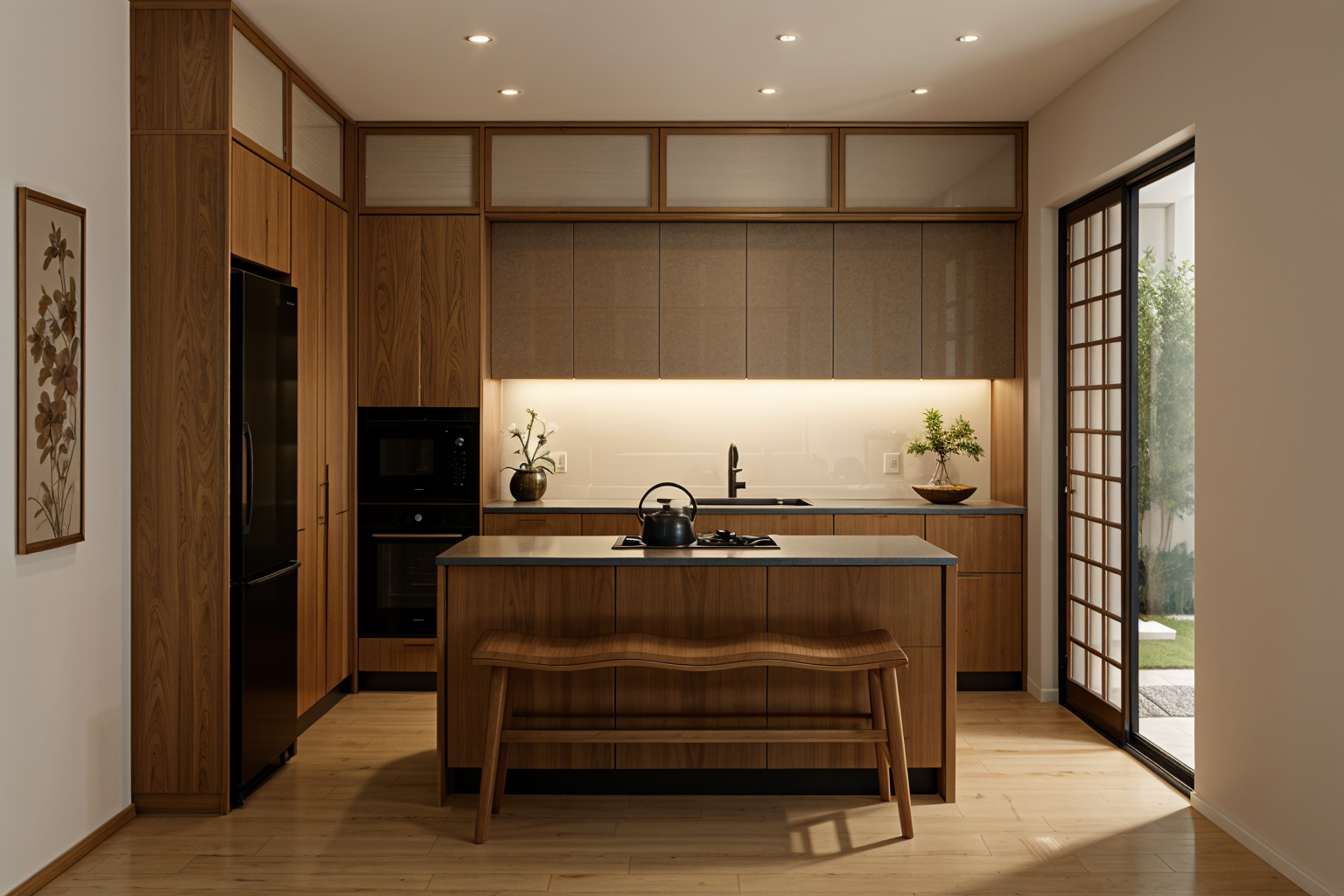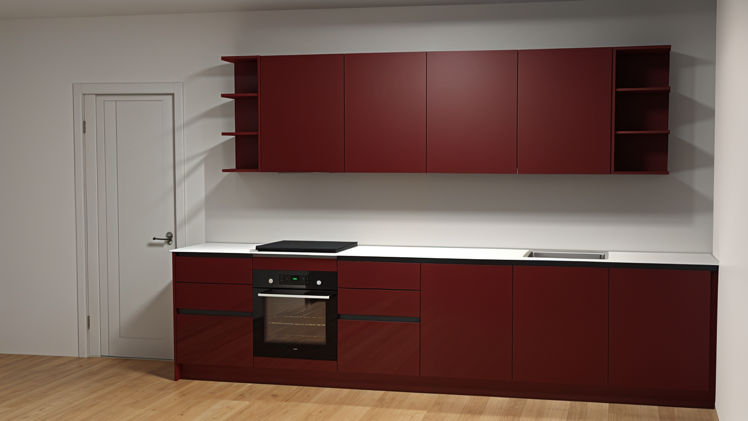 create a realistic render provide illumination for light fixtures and undercabinet lights below the wall cabinets provide lightv in the dining area also increase the scale of the wood texture in the wall cabinet and loft shutters