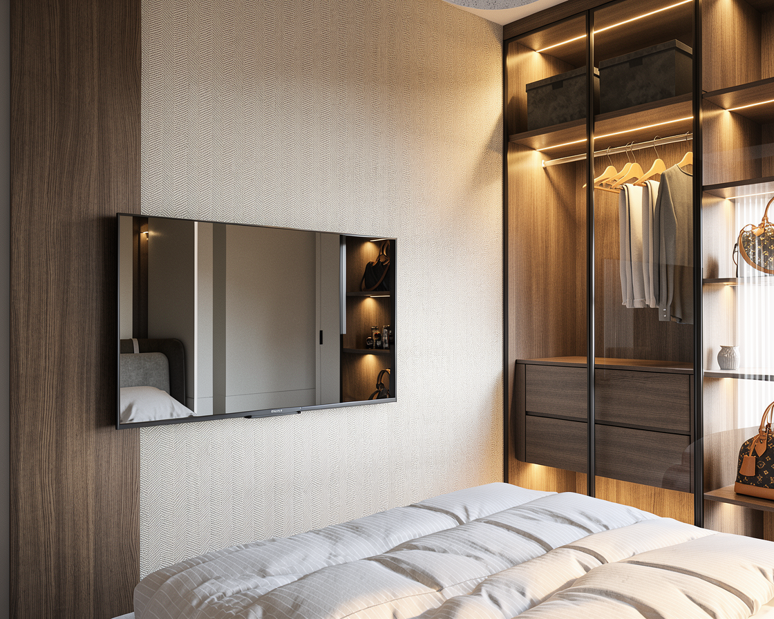 exterior shot preserve camera geometry light and layout exactly match materials exactly to moodboard references wassily armchair all sling parts must be same black white cowhide natural cowhide with visible short fur texture and subtle hair direction not smooth leather side and underside same cowhide chrome frame clean sharp realistic reflections thonet s64 chairs deep burgundy leather with satin gloss finish soft highlights subtle tonal variation darker centers not matte or flat chrome realistic dining table dark wood tabletop with visible grain matte finish metal reflective legs material realism only no redesign